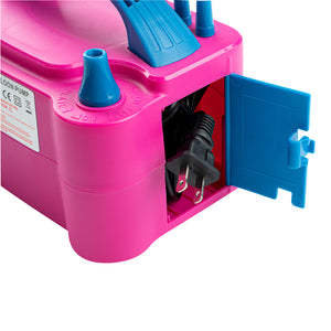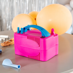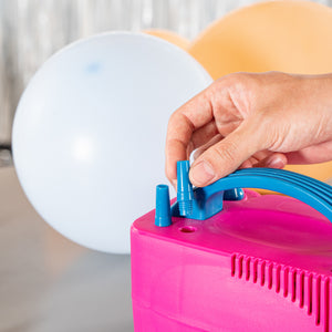 Save time by quickly inflating balloons for your decoration using our Balloonify Electric Air Balloon Pump. This automatic balloon inflator is made from premium PP material, making it durable and efficient. Manufactured with a copper and aluminum motor, this balloon inflator air pump has 600W power, inflating balloons of any material or size in a wink. With 2 inflation ports, this electric balloon inflator lets you fill air in two balloons simultaneously, saving time and energy. This balloon inflator machine lets you operate it manually in case of inflating a few balloons by covering the inflation port with the balloon and pressing it down. To inflate 25 to 30 balloons within a minute, operate this automatic balloon air pump using the on-off switch. Two smaller nozzle pins are provided with this balloon inflator air pump which are screwed into the ports, allowing you to inflate smaller balloons. This electric balloon inflator air pump has a cable storage case on the side to secure the 4.9-foot power chord. With a handle, this lightweight electric balloon blower is portable, making it comfortable for indoor and outdoor use. Measuring 8.2 inches in length by 6.6 inches in width by 5.5 inches in height, this electric balloon pump can be conveniently plugged into a 110V outlet. Shipped in a 1 count box.