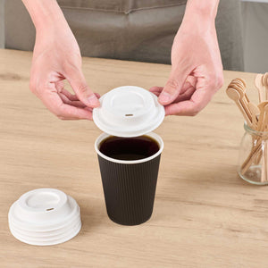Complete the look of your coffees or teas by covering them with our classic, white coffee cup lids. They perfectly complement any coffee cup design!