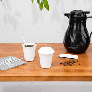 Made from processed sugarcane pulp, known as bagasse, this coffee cup lid breaks down in nature after it's been disposed of. A great alternative to other disposable lids!
