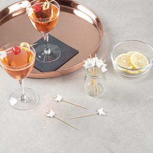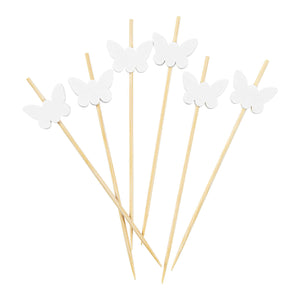 Revamp your appetizers with our Pixy stylish White Bamboo Butterfly Skewers. Featuring a beautiful hand-painted white wooden butterfly decoration, these disposable appetizer skewers invigorate cocktail parties and buffet displays. Made from environmentally-friendly bamboo, these cocktail skewers possess a reliable strength that remains stable even when carrying various food items. With a smooth, splinter-free design, these bamboo skewers ensures a satisfying eating experience without wood chips interfering. These decorative bamboo picks are biodegradable and commercially compostable, offering an earth-conscious disposal alternative. The sharp tips of these party food toothpicks make it easy to pierce different food items while preserving their integrity. These decorative butterfly skewers measures 4 inches in length by 0.75 inches in width. Shipped in a 1,000 count box.