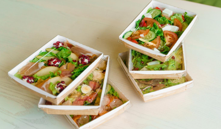 Adapting menus to arrange meals in a unique manner is a great way to attract customers to your catering services. Clients are still looking to make their dining experience memorable for their guests, and plating boxed lunches unconventionally is an easy way to catch the eye of guests at catered events and impress your clients with your company’s services. Take a look at your prepackaged menu items and find ways to elevate your food presentation. Find inspiration from large catered buffets or food stations and create individual charcuterie boards in wooden take out boxes or personalized dessert platters on disposable trays.