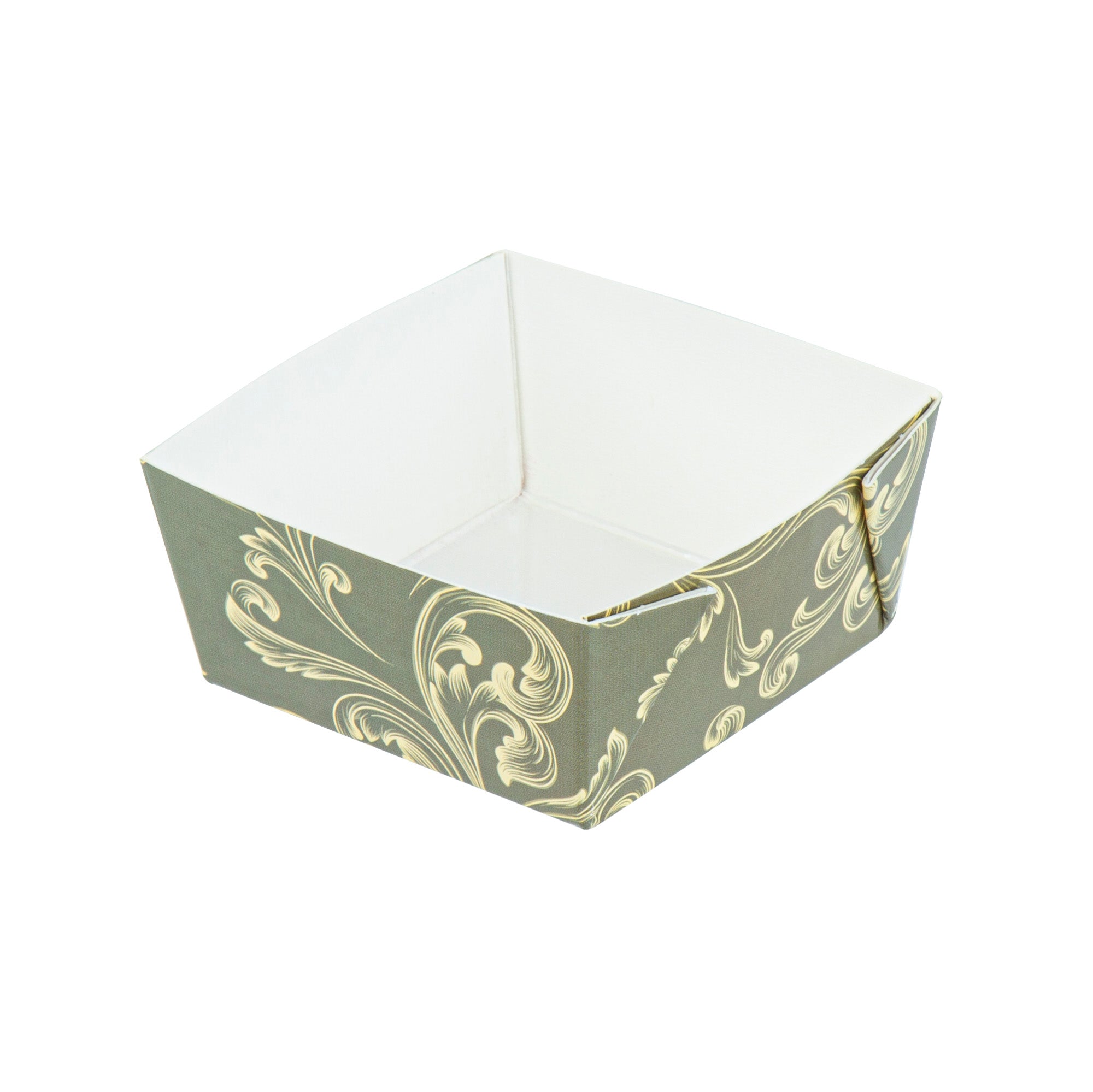 Bake Tek 8 oz Dark Green Vintage Floral Paper Baking Tray - Greaseproof - 4 1/4" x 4 1/4" x 1 1/2" - 100 count box4 1/4" x 4 1/4" x 1 1/2"RWA1799G