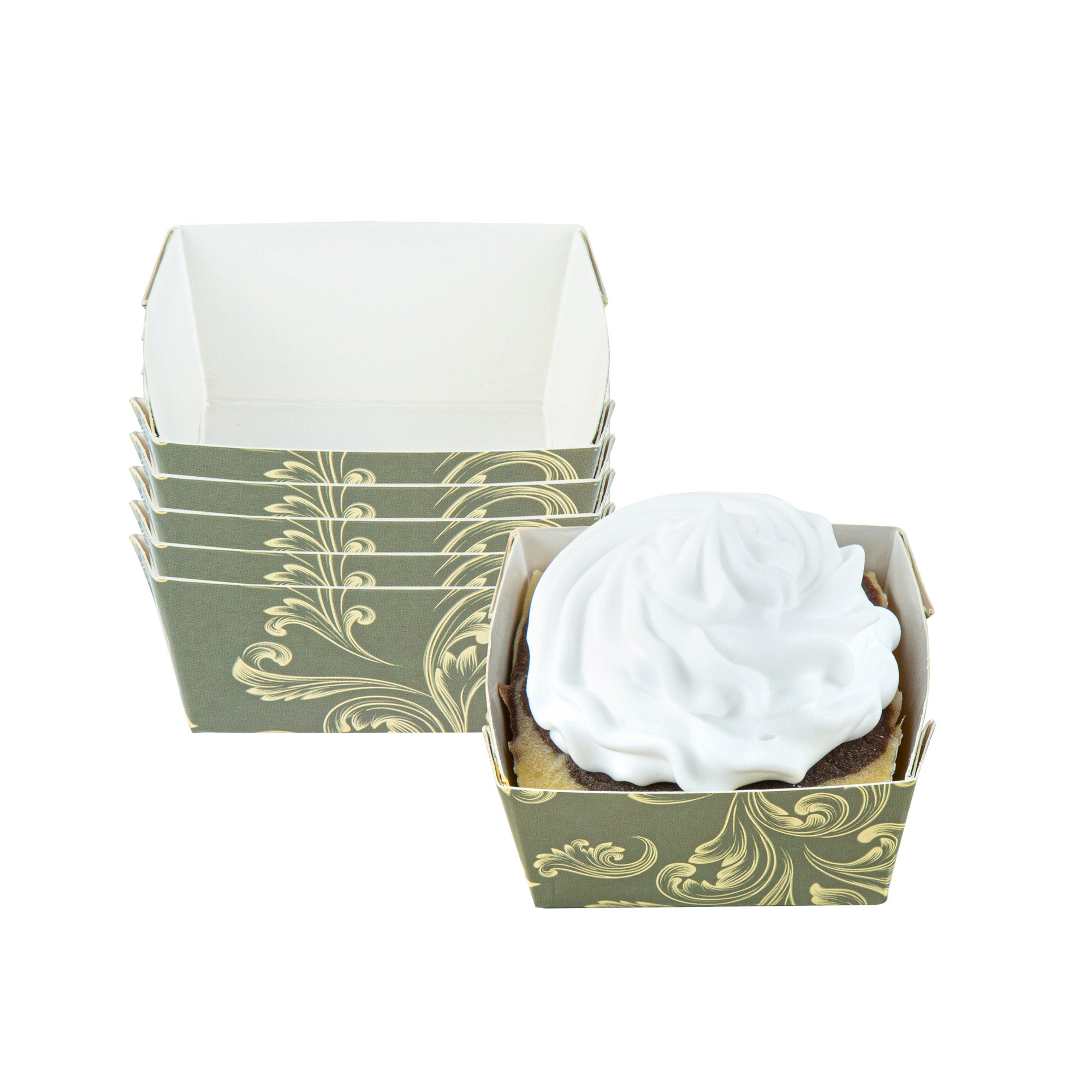 Bake Tek 9 oz Dark Green Vintage Floral Paper Mini Baking Loaf Pan - Greaseproof - 4" x 2 1/4" x 2" - 100 count box4" x 2 1/4" x 2"RWA1798G