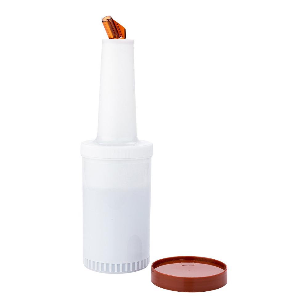 Specially designed with interchangeable dispensing lids and airtight storage lids, a selection of our quick pour storage containers is ideal for storing and pouring juices, mixes, syrups, sauces, and dressings. Made from durable materials, our bar pour bottles resist breakage and can withstand frequent use. The transparent construction of our store and pour bottles allows you to quickly identify the contents and monitor the quantity, ensuring efficient inventory management.