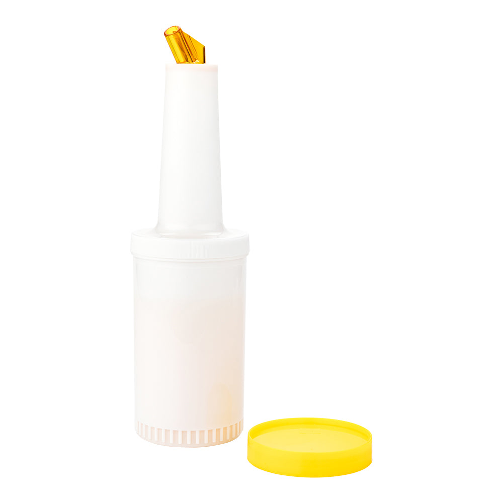 Bar Lux 1 qt Plastic Quick Pour Storage Container Bottle - with Yellow Spout and Lid - 3 1/2" x 3 1/2" x 13" - 1 count box3 1/2" x 3 1/2" x 13"RWT0495Y