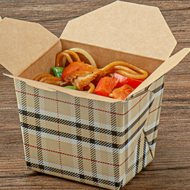 Bio Tek 26 oz Round Plaid Paper Noodle Take Out Container - 4" x 3 1/2" x 3 3/4" - 200 count box4" x 3 1/2" x 3 3/4"RWA0336BRB