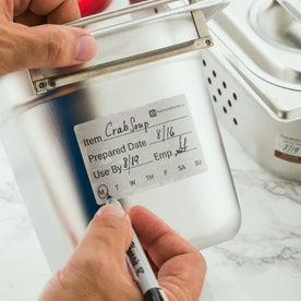 In bustling commercial kitchens, date rotation labels and food rotation stickers are indispensable tools for maintaining food safety and efficiency. These adhesive food labels are critical in organizing inventories, ensuring that food items are used within their optimal shelf life, and preventing waste. Day of the week labels, for instance, are perfect for quickly identifying when a batch was prepped, thus aiding kitchen staff in managing food freshness, reducing spoilage, and adhering to food safety protocols. These labels are essential in any restaurant or foodservice operation where precision and safety are paramount. Our selection includes a variety of kitchen date stickers designed to withstand the rigors of busy kitchen environments. With options like waterproof labels and freezer safe labels, you can confidently label items stored in cold or damp conditions without fear of the labels deteriorating. Writable food stickers allow for easy customization, letting chefs and prep teams add specific details like preparation dates or ingredient lists. Color-coded labels make it simple to categorize food items at a glance, streamlining inventory management and supporting quick decision-making. The range also includes removable date labels that ensure clean and residue-free surfaces, maintaining the hygiene standards expected in professional kitchens. Implementing these commercial kitchen labels can significantly enhance workflows by reducing the time spent searching for and verifying food items, ensuring that staff can focus on food preparation and service. The use of food storage stickers and reusable date labels not only supports food safety but also boosts operational efficiency, allowing for a more organized and effective kitchen space. For a complete labeling solution, consider exploring related categories such as plastic label stickers and food prep labels. Elevate your kitchen's efficiency and safety standards with our comprehensive range of labeling solutions designed for restaurant use.
