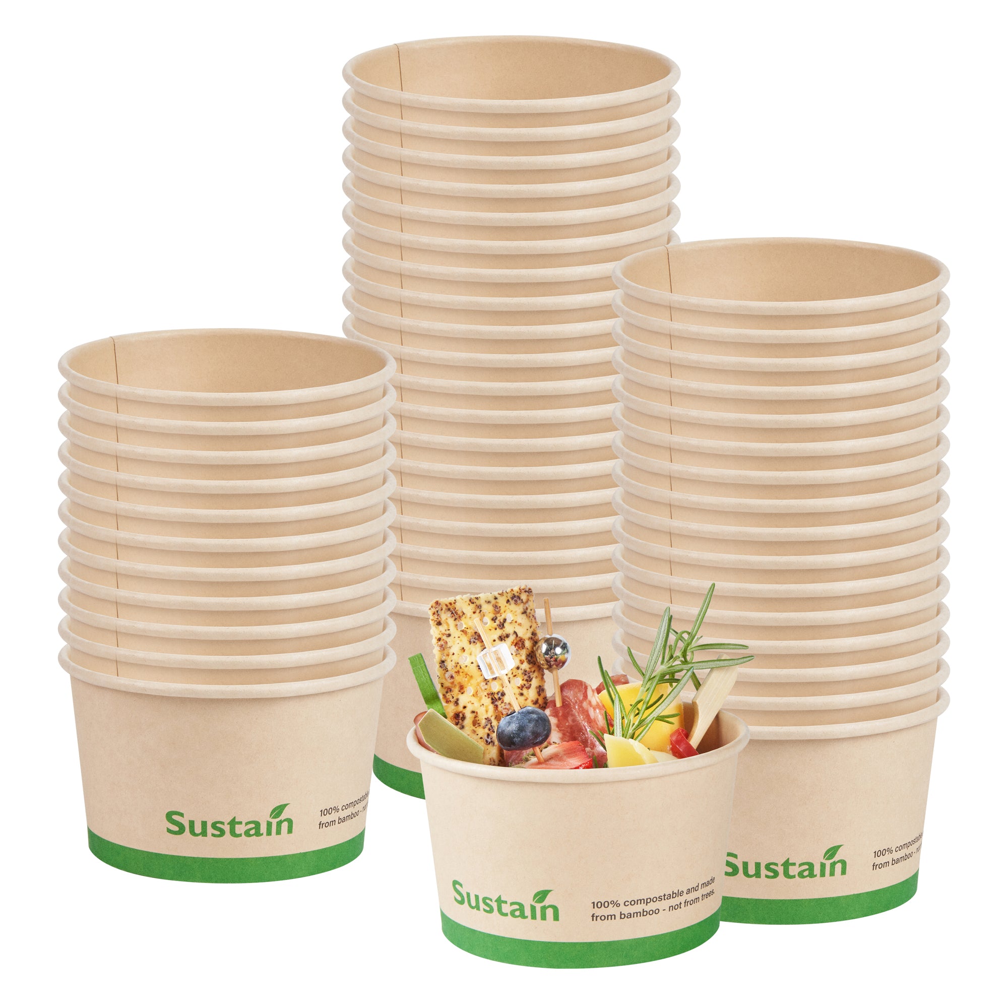 Sustain 4 oz Round Bamboo Paper To Go Cup - with PLA Lining, Compostable - 3" x 3" x 2 1/2" - 200 count box3" x 3" x 2 1/2"RWA1306K