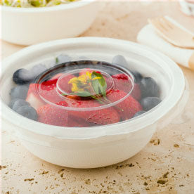 Pulp Safe Round Clear Plastic Dome Lid - Fits 32 oz Bagasse Salad Bowl - 100 count box7 1/4" x 7 1/4" x 1 1/4"RWA0625C