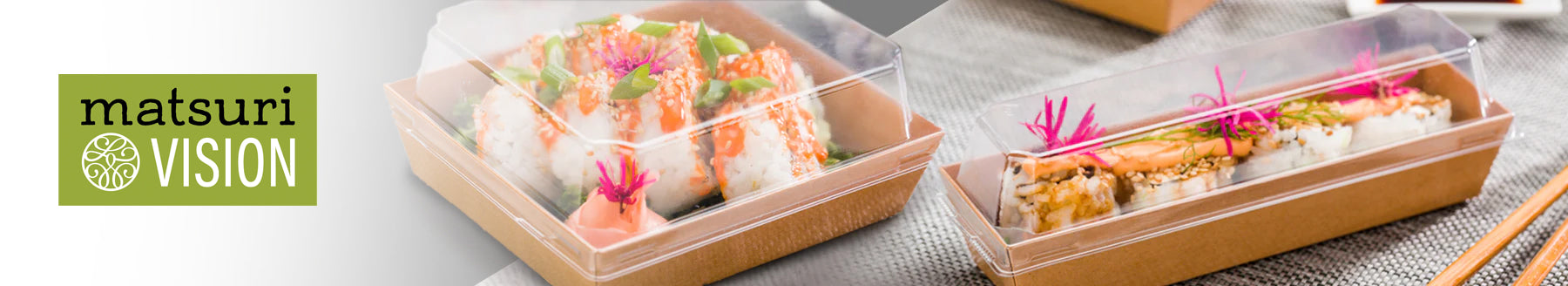 Package and showcase sushi with our Matsuri Vision collection. Made from heavyweight kraft paper, our take out containers have a sturdy base for holding multiple California rolls without bending or breaking. Featuring a grease-resistant lining, our take out boxes keep oily splotches from appearing and maintain their high-quality look.