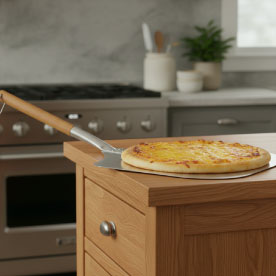 In bustling pizzerias and high-demand restaurants, pizza paddles are indispensable for efficiently transferring pizzas in and out of hot ovens. These commercial pizza peels are designed to support the precise handling of freshly prepared dough, ensuring both speed and safety in a fast-paced kitchen environment. Whether you're sliding a Margherita onto a blazing stone or retrieving a perfectly blistered crust, pizza peels are essential tools in maintaining the quality and consistency of your dishes. Key terms such as wooden pizza peel and metal pizza peel are integral to any foodservice operation seeking to optimize their pizza-making process. Our range includes various styles, each tailored to specific culinary needs. The wooden pizza peel offers a classic, non-stick surface that's gentle on delicate dough, while the metal pizza peel is prized for its durability and lightweight construction, allowing for easy maneuvering in tight spaces. For those looking to minimize excess flour and ensure even cooking, the perforated pizza peel provides an innovative solution by allowing steam to escape. With options such as long handle peel and short handle peel, chefs can select the perfect tool to suit their kitchen setup and personal preference. These choices are not just about functionality but also about enhancing your workflow efficiency and product quality. Integrating these tools into your kitchen not only improves service speed but also enhances food integrity by reducing the risk of burns or dropped pizzas. Complement your pizza tools with related bulk pizza supplies and restaurant pizza tools to further elevate your culinary operations. Investing in durable pizza peels means investing in your team's efficiency and your customers' satisfaction. Explore our range today to find the right fit for your commercial kitchen needs, and take the first step toward a more streamlined pizza-making process.