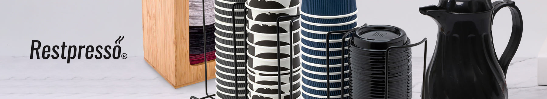 Serve steamy cappuccinos, delightfully warm hot chocolate, or flavorful teas using our Restpresso collection of coffee supplies.To keep beverages hot and customers satisfied, we offer a growing assortment of paper coffee cups in a variety of designs, including kraft double wall coffee cups and premium printed styles that add flair to drink service. Whether you want to stock up on high-end coffee cup sleeves, try out decorating stencils, or neatly organize your employees’ prep area, our selection of coffee shop supplies includes everything you need to upgrade coffee brewing at your foodservice establishment. From vacuum-insulated carafes and airpot dispensers to milk frothers and countertop organizers, this collection supports every step of the coffee service process.