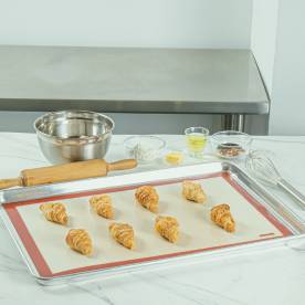 In bustling commercial kitchens, reusable baking mats and pan liners are indispensable for efficient and eco-friendly operations. These versatile tools are perfect for a variety of tasks, from baking delicate pastries to roasting savory meats. Their ability to withstand high temperatures makes them ideal for professional chefs who demand both performance and reliability. With options like silicone baking mats and non-stick pan liners, foodservice operators can ensure even cooking and easy food release, all while reducing waste in busy kitchen environments. Our selection includes durable baking mats and heat-resistant liners that cater to the rigorous demands of restaurant use. Silicone baking mats offer a non-stick surface that simplifies the preparation of baked goods and savory dishes alike, while non-stick pan liners provide a reliable barrier that prevents food from adhering to cookware. These washable baking mats are not only easy to clean but also reusable, making them an eco-friendly choice for establishments looking to minimize their environmental impact. Designed for high-temperature applications, these products ensure consistent results and are available in bulk to meet the needs of commercial kitchens. Integrating reusable silicone mats and oven-safe liners into your kitchen workflow enhances efficiency by reducing cleanup time and maintaining food quality. These professional baking liners complement other essential kitchen tools such as mixing bowls and baking sheets, creating a seamless setup for your culinary team. Equip your kitchen with these indispensable liners and experience improved productivity and sustainability. Explore our range of commercial baking mats to find the perfect fit for your establishment's needs.