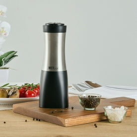 Met Lux Black 2-in-1 Electric Salt and Pepper Grinder - Battery-Operated, with LED Light - 2 3/4'' x 2 3/4'' x 7 3/4'' - 1 count box2 3/4" x 2 3/4" x 8"RWT1553B