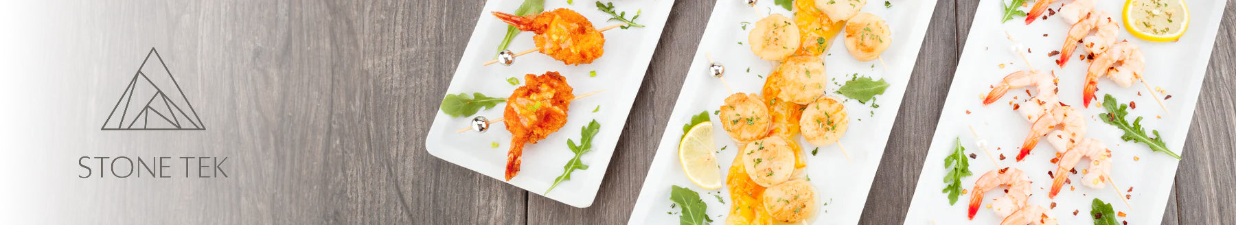 Enhance your dining experience with our luxurious Stone Tek collection of serveware and decor. Meticulously crafted from natural materials such as slate and marble, this range adds a touch of elegance and sophistication to any table setting. Ideal for both casual meals and formal gatherings, our selection features exquisitely designed serving trays, coasters, cake stands, and chalkboard signs that will captivate your guests and make every meal unforgettable.