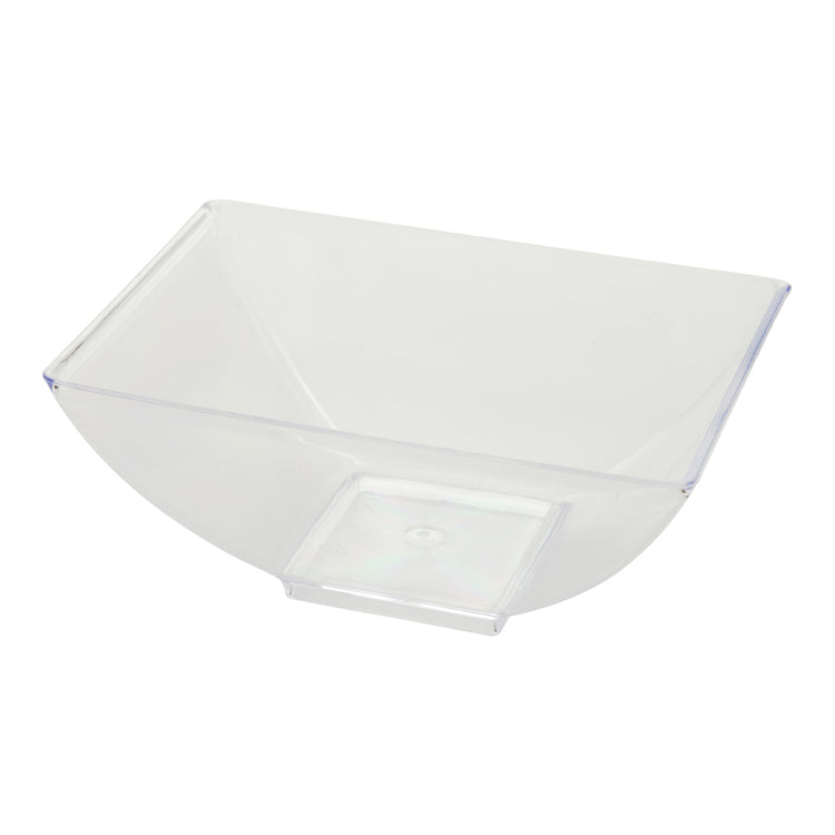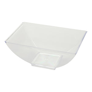 Elevate your culinary presentations with our Bundle: Mini Serve 100 3-ounce Rectangle Clear Plastic Small Architetto Bowls with 100 Silver Plastic 4-inch Mini Spoons. This bundle includes our rectangle clear plastic small architetto bowls and mini silver plastic spoons. Designed to handle the rigors of catering operations, these food bowls and spoons are made from durable plastic and do not crack or warp easily. With a contemporary rectangular shape and raised edges, these serving bowls amplify the visual appeal of your culinary creations. Complementing these bowls are these plastic spoons featuring a shiny silver finish that effortlessly enhances the presentation of tantalizing appetizers, from miniature tuna tartare to personal-sized strawberry shortcakes. These 4-inch spoons have sturdy handles and stand up to hefty bites and big scoops of gelato. Ideal for busy foodservice establishments, these serving dishes and spoons are disposable and can be discarded after use. These plastic serving bowls measure 3.25 inches in length by 2.25 inches in width by 1.25 inches in height and can hold up to 3 ounces. Each order includes 100 bowls and 100 spoons.