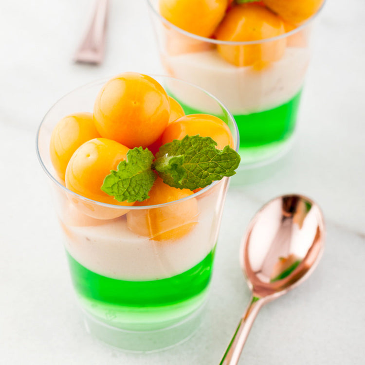 Elevate any dessert presentation with our Mini Serve 3-ounce Round Clear Plastic Mini Parfait Glasses with Silver Plastic Mini Forks. Made from premium plastic, these dessert shooters are durable yet lightweight, allowing for an easy grip and crack-resistant construction ideal for both indoor and outdoor events. These party glasses have a transparent finish to showcase colorful parfaits, mousses, and gelatos, while their rolled rims make for comfortable sipping. With a capacity of 3 ounces, these clear glasses are perfect for serving single portions of miniature treats and appetizers. Paired with the included silver plastic forks, these disposable glasses create an upscale look for any dessert spread. These 4-inch forks have sturdy handles and pointed tines that stand up to the heartiest of treats, from dense cakes to crispy cookies. To simplify your post-event cleaning experience, these round cups are effortlessly disposable. These parfait cups measure 2 inches in diameter by 2.5 inches in height and have a capacity of 3 ounces, while the plastic forks measure 4 inches in length. Each order includes 100 glasses and 100 forks.