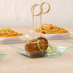 Add style to your next event with our Bundle: Mini Serve 100 Square Seagreen 3.9-inch Plastic Small Modern Plates with 100 Silver Plastic 4-inch Mini Spoons. This bundle includes our premium plastic seagreen square plates and sleek silver mini spoons, both crafted from premium plastic. Featuring a unique seagreen hue and raised edges, these plates beautifully frame your culinary creations while averting messes, ensuring a polished and contained display. With their durable structure, these seagreen plates can withstand even the heartiest of appetizers without compromising their structural integrity. Conveniently stackable, these modern plates maximize your storage space, making them ideal for commercial kitchens and catering services. Complementing the plates are these shiny silver mini spoons, designed to effortlessly enhance the presentation of your tantalizing dishes, from miniature tuna tartare to personal-sized strawberry shortcakes. With sturdy handles that can scoop up hefty bites of polenta or gelato, these 4-inch spoons are the perfect size for your bite-sized offerings. Measuring 3.9 inches in length by 3.9 inches in width, these plates offer ample space for your creations, while each spoon measures 4 inches in length. Each order includes 100 plastic plates and 100 mini spoons.
