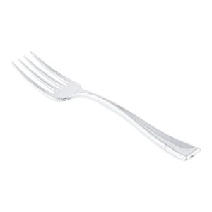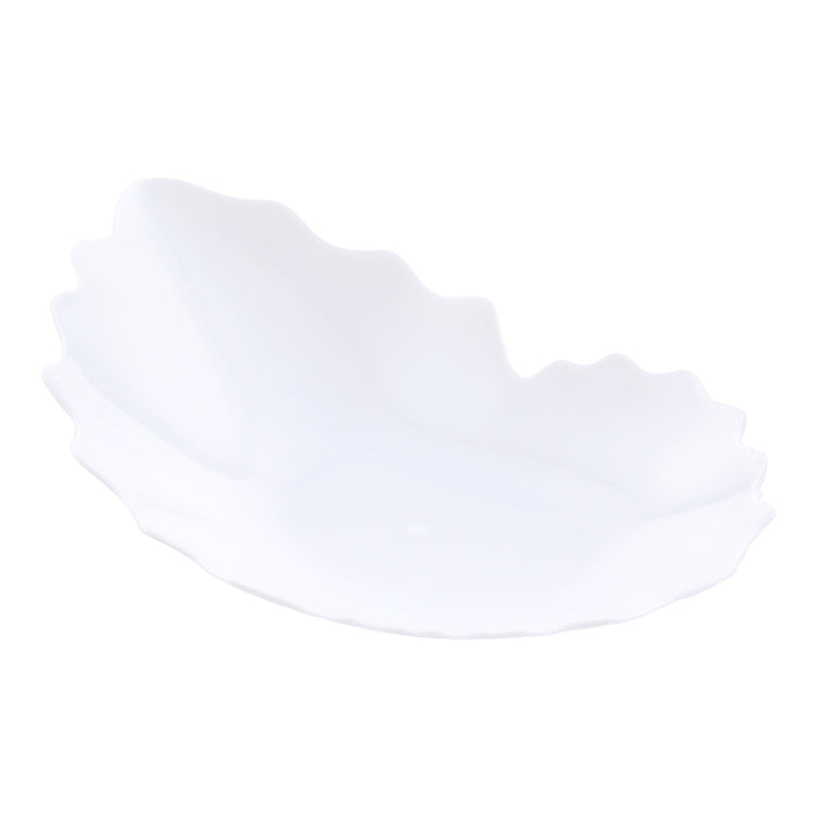 Impress your guests at catered functions with our Mini Serve White Plastic Mini Coquille Plates with Silver Plastic Mini Forks. Displaying an attractive scalloped seashell design, these disposable plates serve as the picture-perfect canvas to highlight your irresistible hors d'oeuvres and mini desserts. Manufactured using high-quality PS plastic, these tasting plates and cake forks are disposable, facilitating easy cleanup post-event. The accompanying silver plastic forks make sampling delicacies like stuffed mushrooms or mini éclairs convenient for guests. These seashell plastic plates measure 3.25 inches long by 3.25 inches wide by 0.5 inches tall, while the plastic forks measure 4 inches long. Every order includes 100 plates and 100 forks.