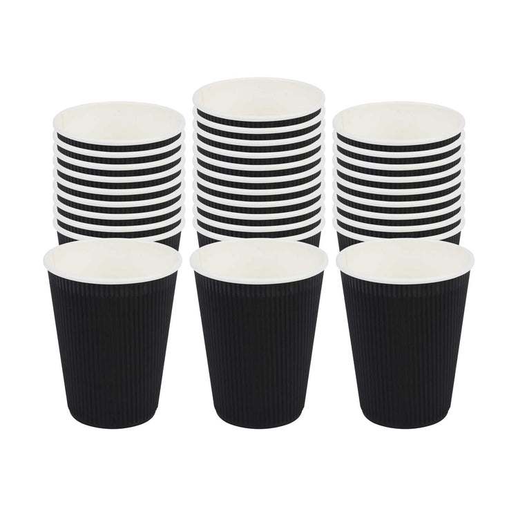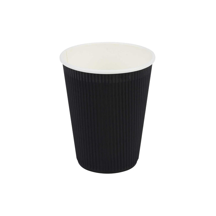 12 OZ BLACK PAPER COFFEE CUP - RIPPLE WALL