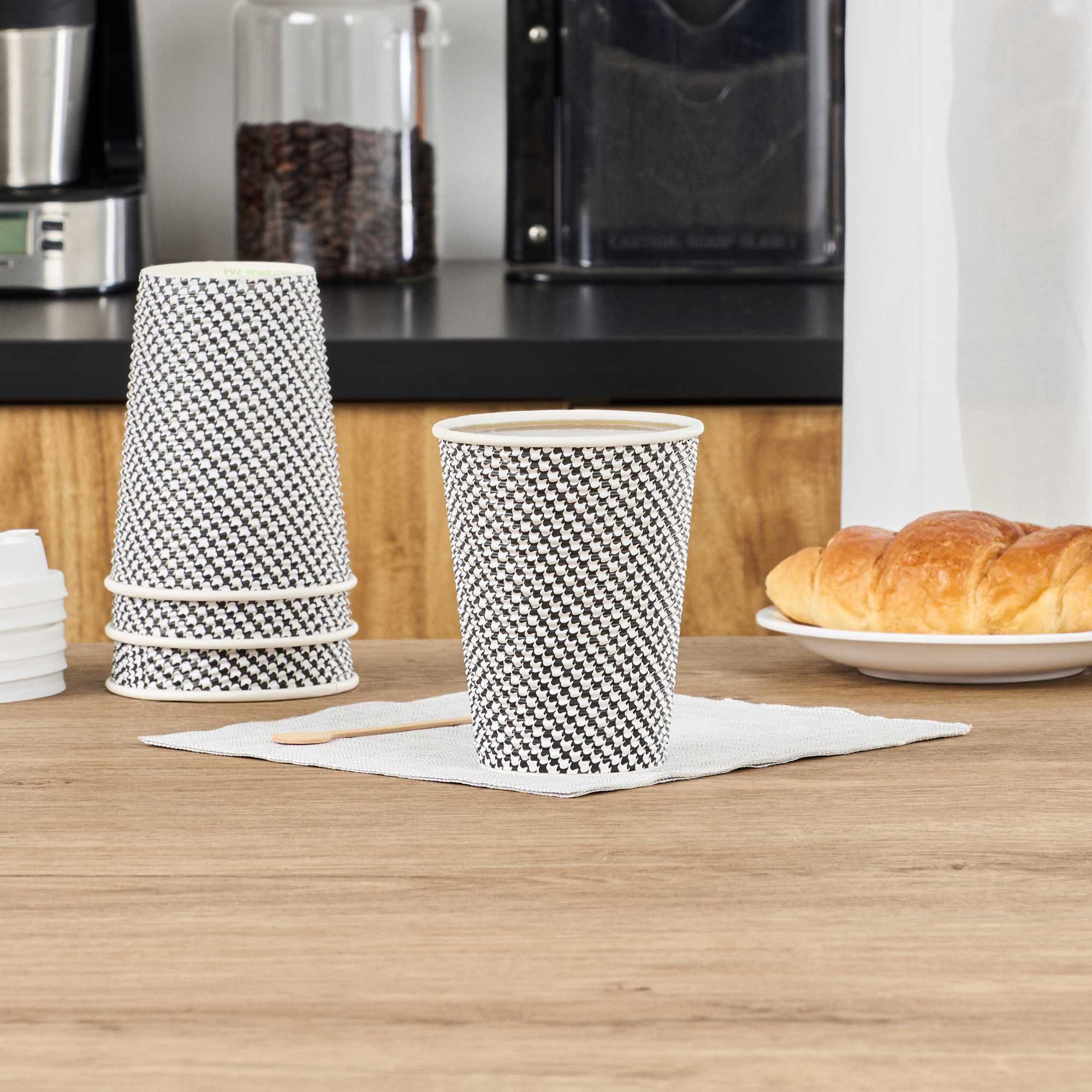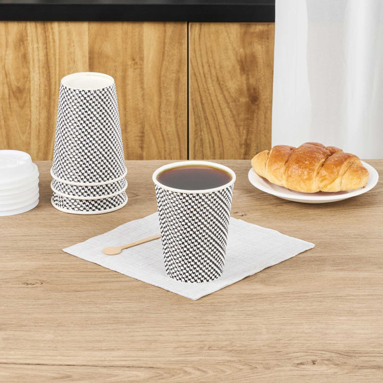 12 OZ HOUNDSTOOTH PAPER COFFEE CUP - SPIRAL WALL