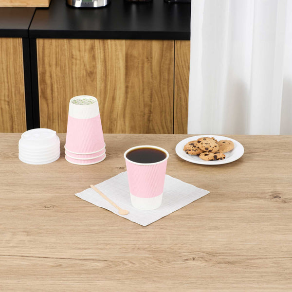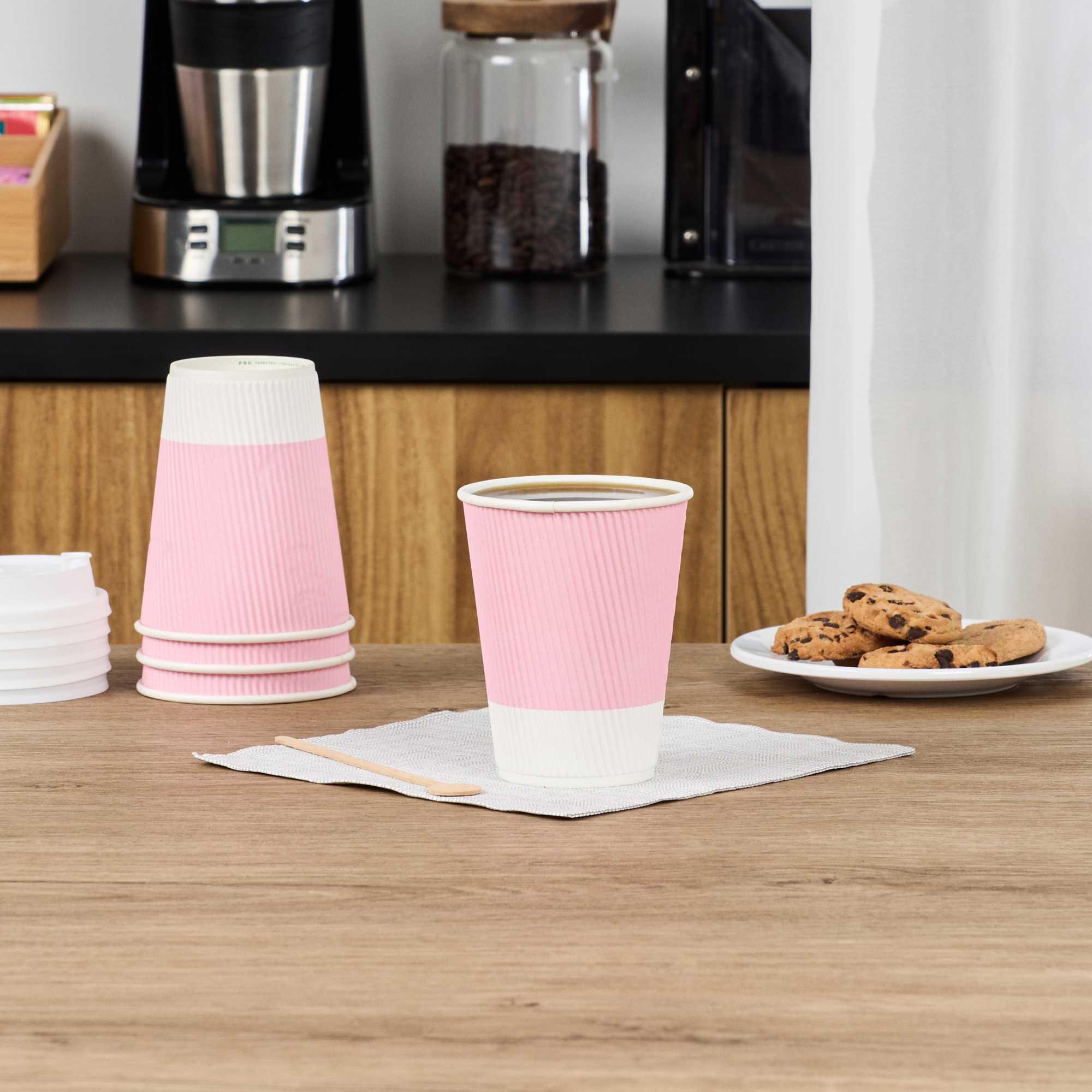 12 OZ LIGHT PINK PAPER COFFEE CUP - RIPPLE WALL