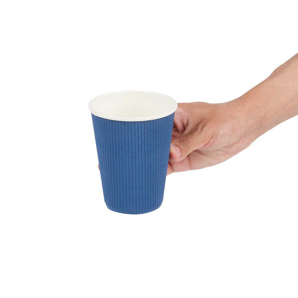 12 OZ MIDNIGHT BLUE PAPER COFFEE CUP - RIPPLE WALL