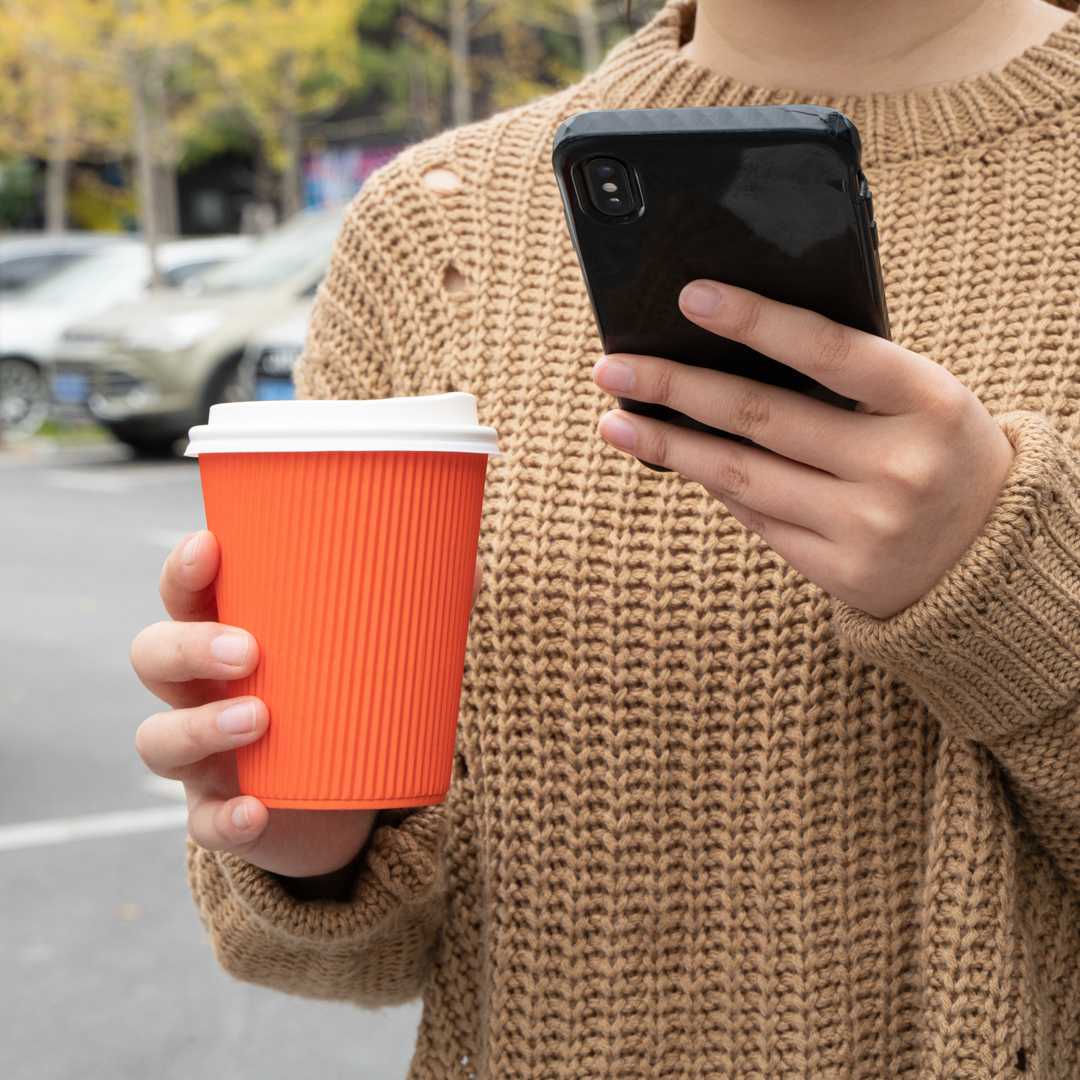 12 OZ TANGERINE ORANGE PAPER COFFEE CUP - RIPPLE WALL