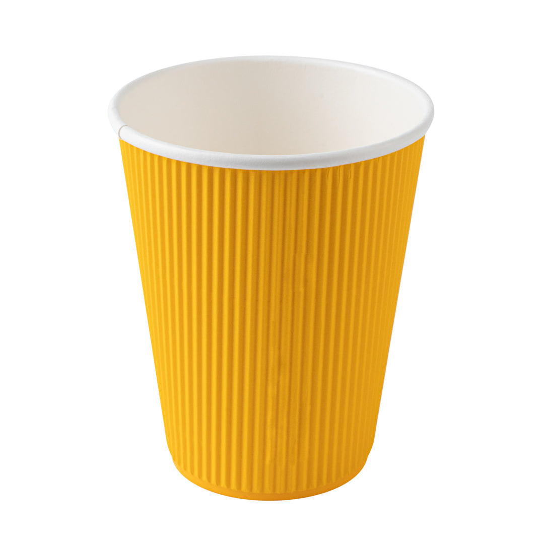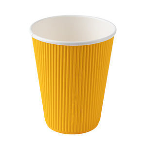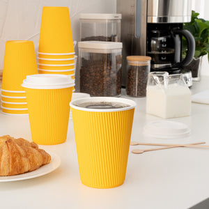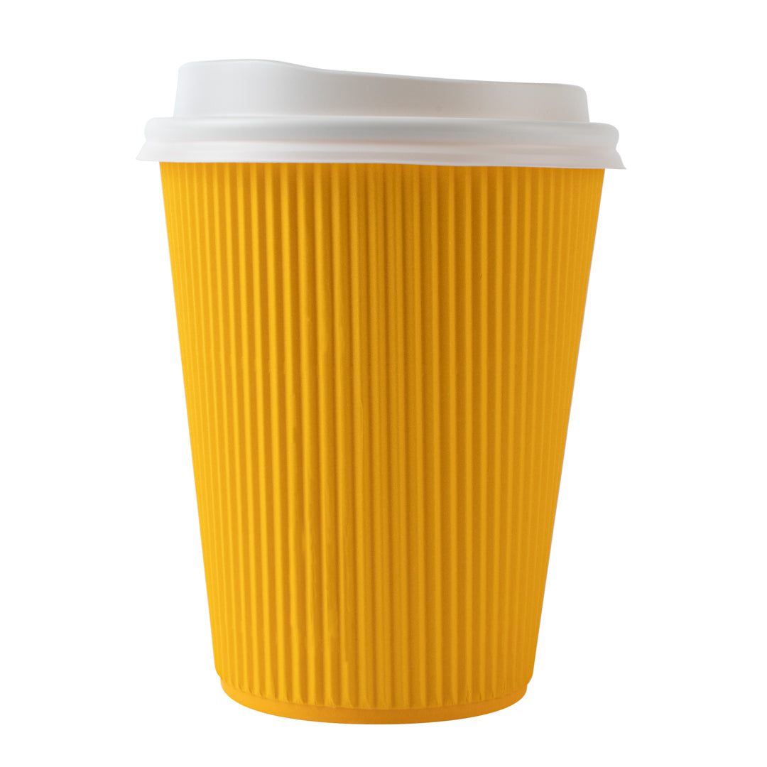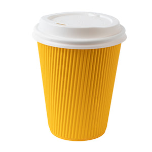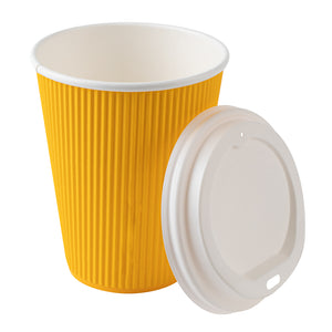 12 OZ YELLOW PAPER RIPPLE WALL COFFEE CUP - WITH WHITE LID