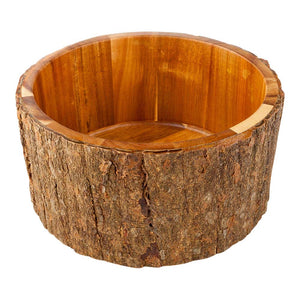 140 OZ ROUND NATURAL ACACIA SERVING BOWL - VARNISHED, BARK EDGES