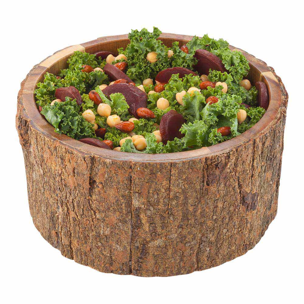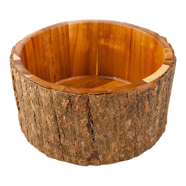 Create earthy tablescapes and elegant centerpieces with our Bio Tek Large Round Acacia Wood Serving Bowls! Carved from all-natural acacia wood, these wooden serving bowls are built to be long-lasting, durable, and beautiful. Each of these unique serving bowls is carefully designed with a natural bark exterior to bring an earthy and rustic touch to your serveware. In addition, we've finished these acacia wood bowls with an attractive varnish to enhance the beauty and graining of their wooden construction. Each of these serving bowls measures 10 inches in diameter by 5 inches in height. These food-safe wooden bowls are a great size for serving large salads, snacks, appetizers, desserts, and more! This wooden serving bowl is shipped in a 1-count box.