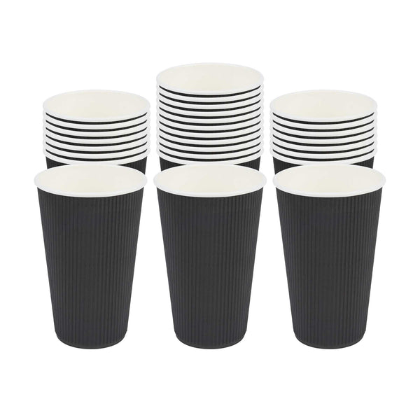 16 OZ BLACK PAPER COFFEE CUP - RIPPLE WALL