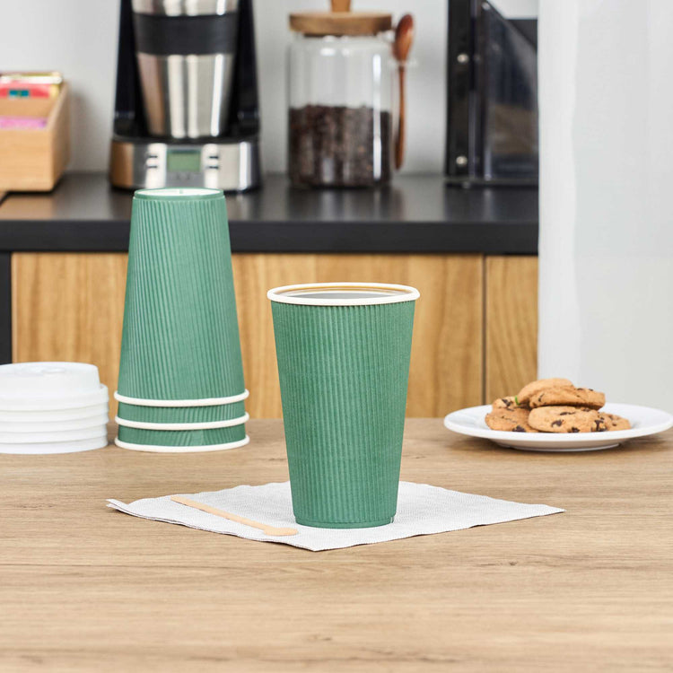 16 OZ FOREST GREEN PAPER COFFEE CUP - RIPPLE WALL