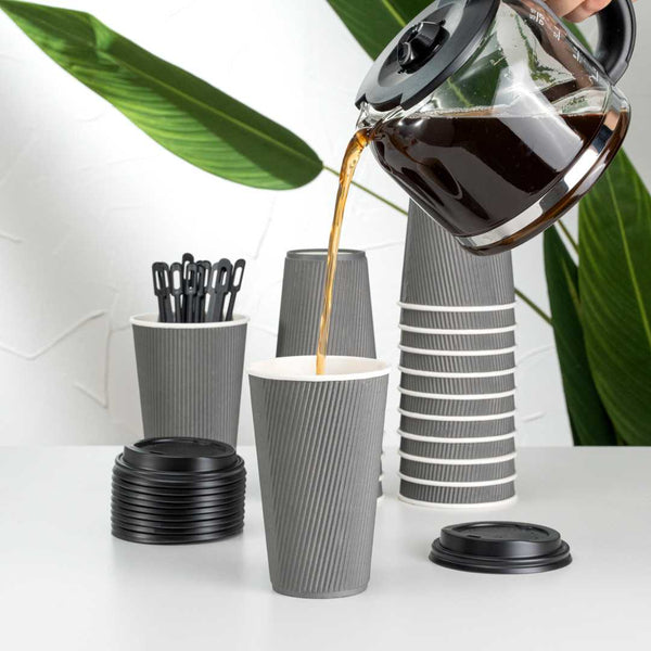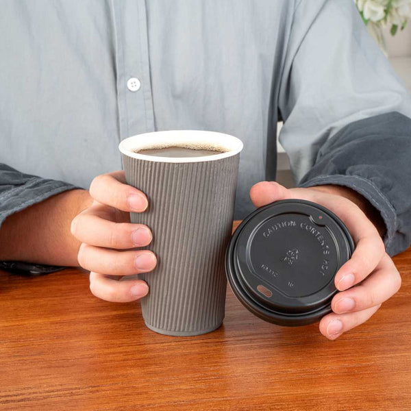 16 OZ GRAY PAPER COFFEE CUP - RIPPLE WALL