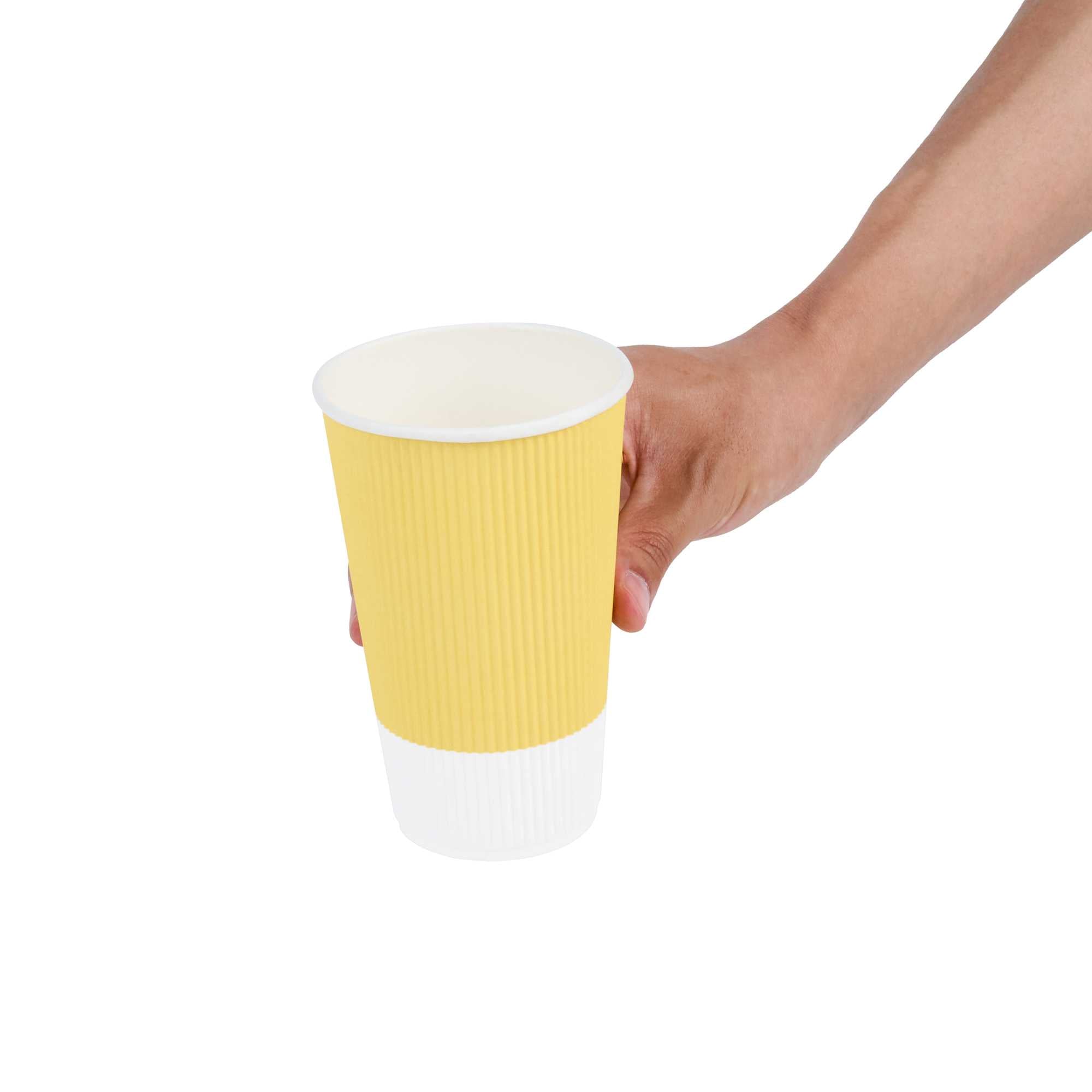 16 OZ LIGHT YELLOW PAPER COFFEE CUP - RIPPLE WALL