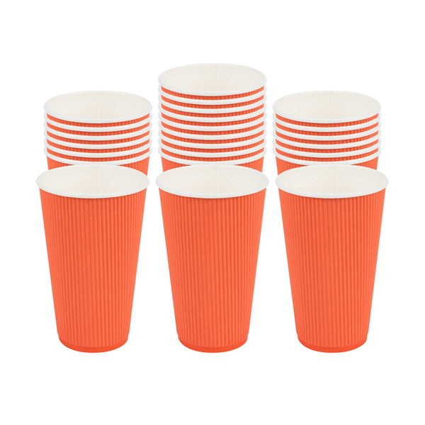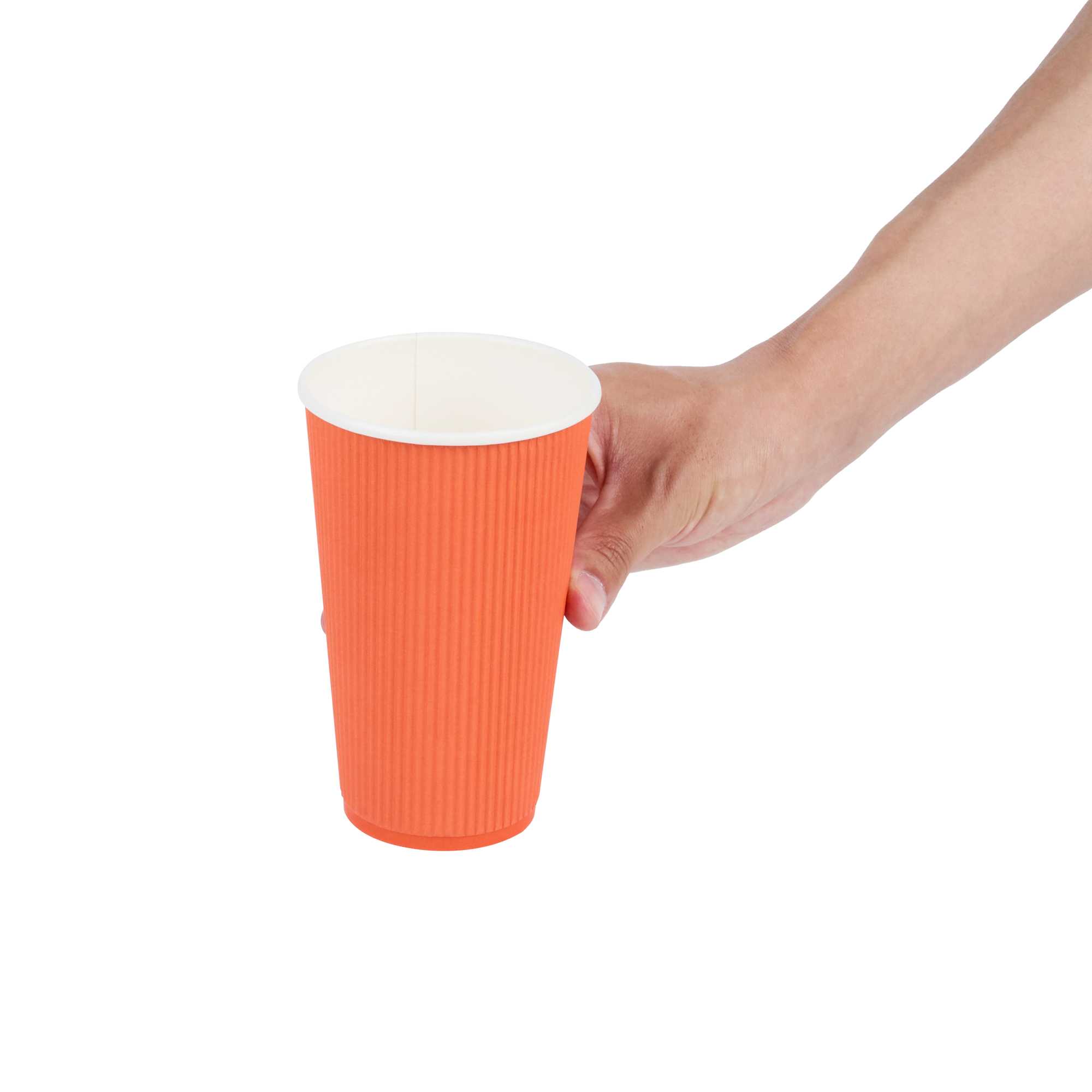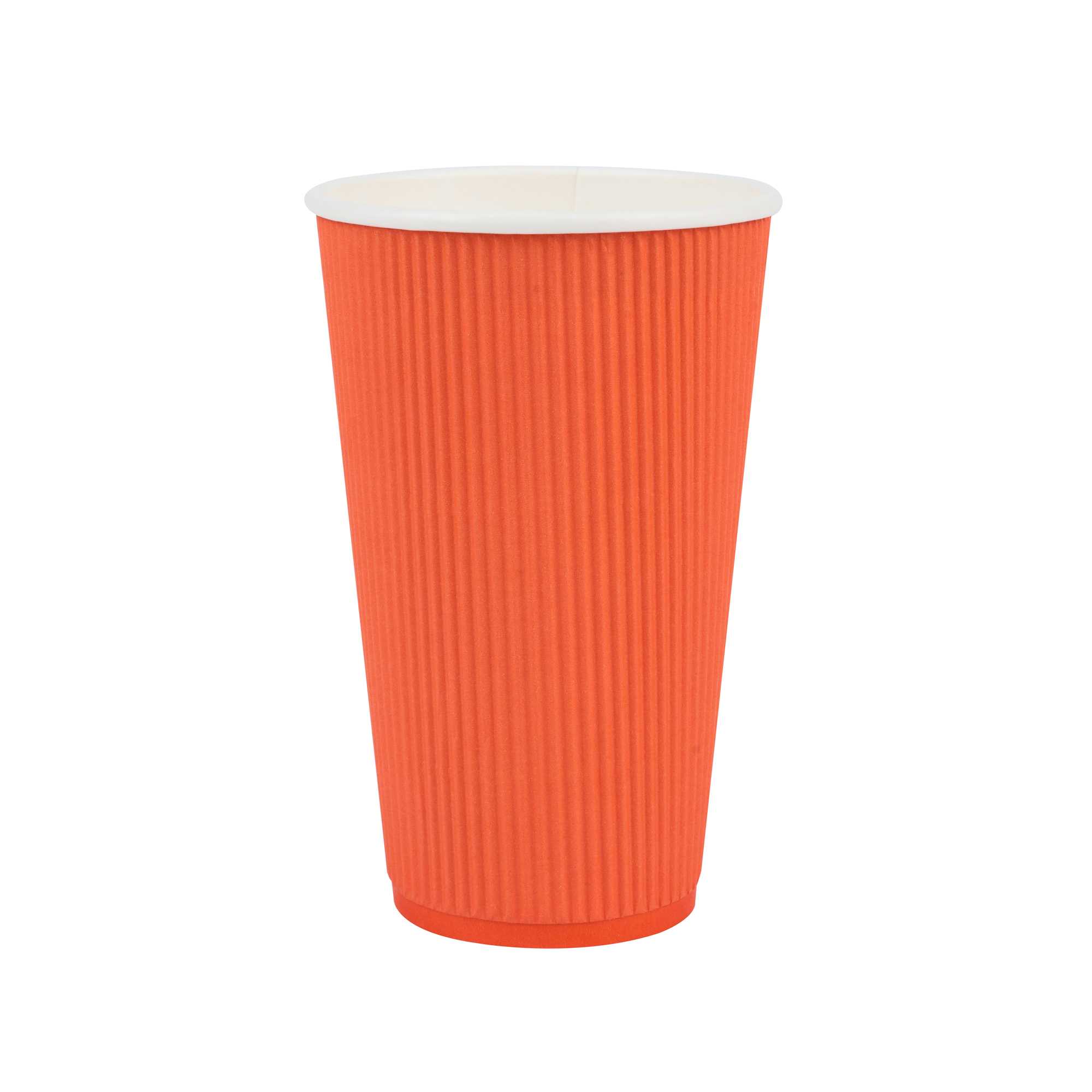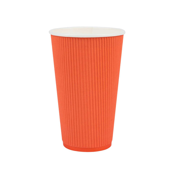 16 OZ TANGERINE ORANGE PAPER COFFEE CUP - RIPPLE WALL