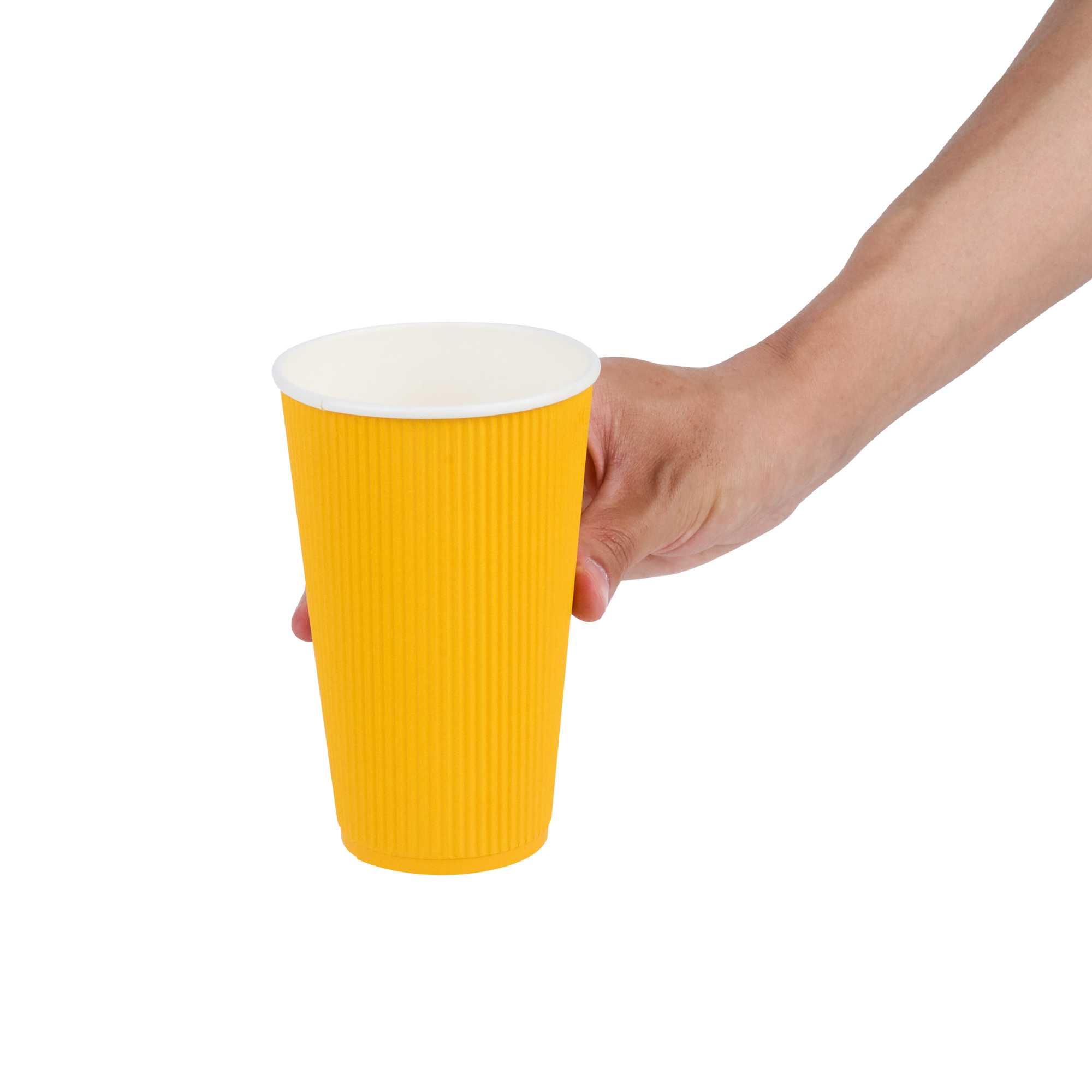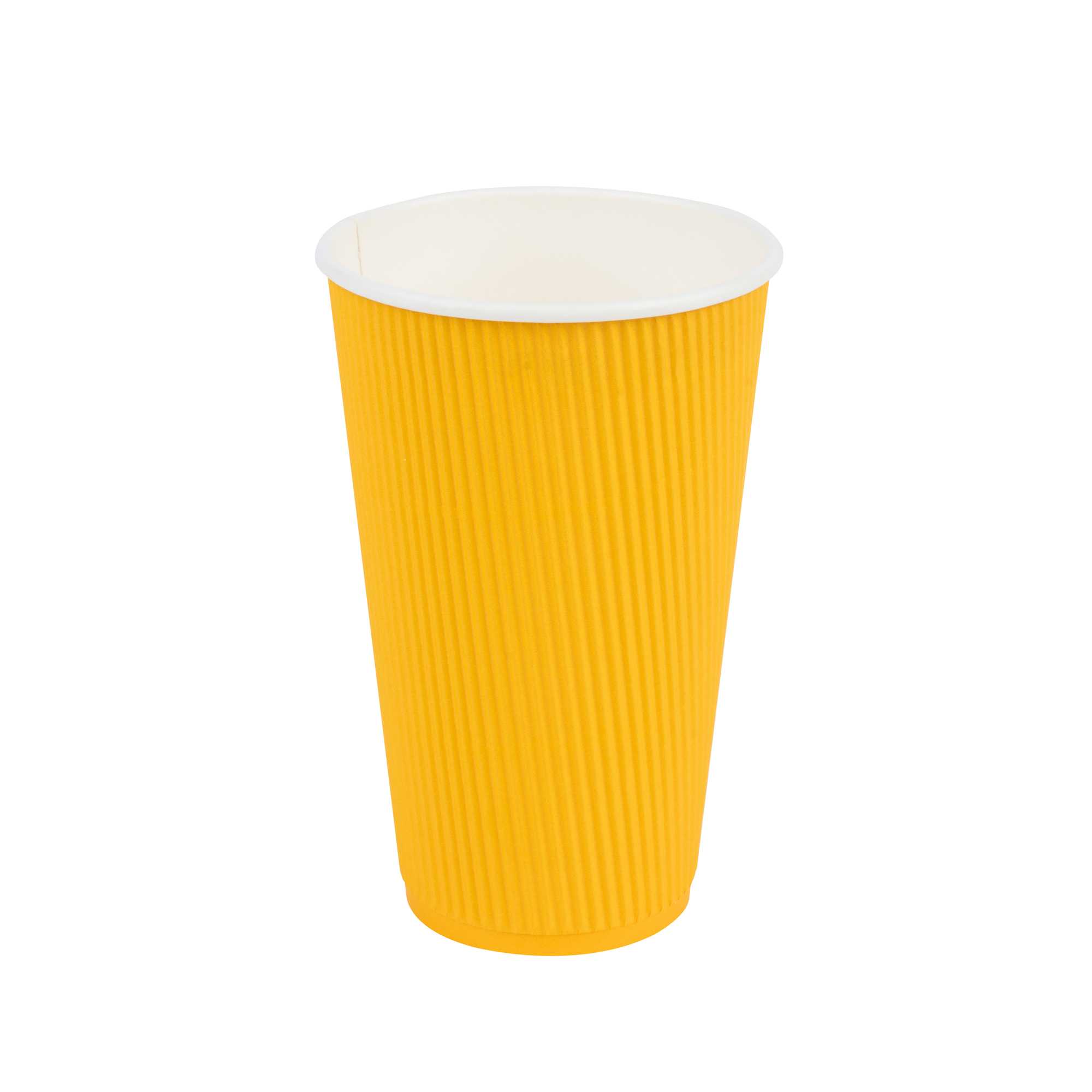 16 OZ YELLOW PAPER COFFEE CUP - RIPPLE WALL