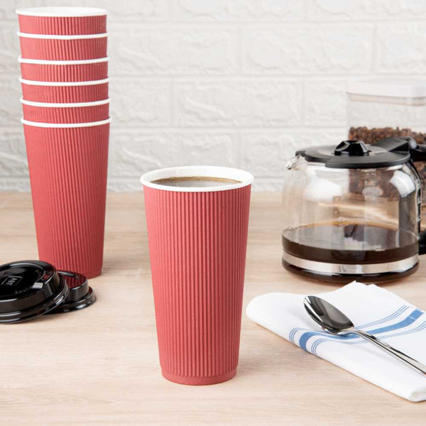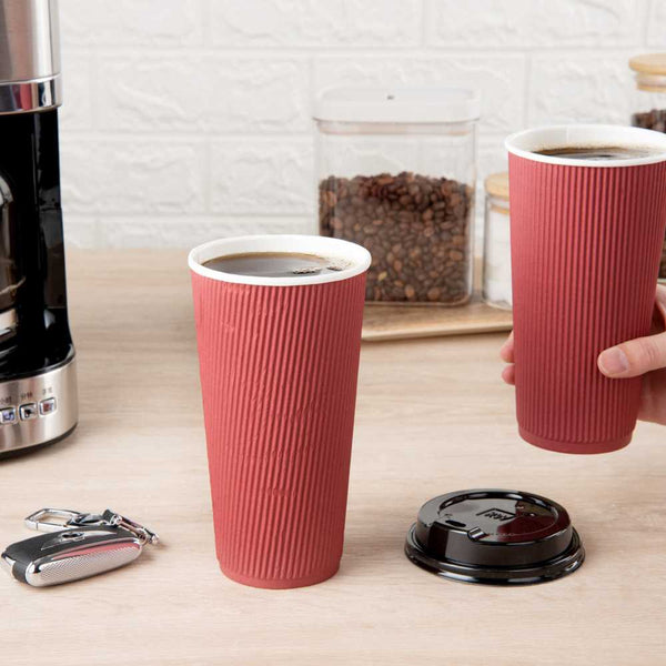 20 OZ CRIMSON PAPER COFFEE CUP - RIPPLE WALL