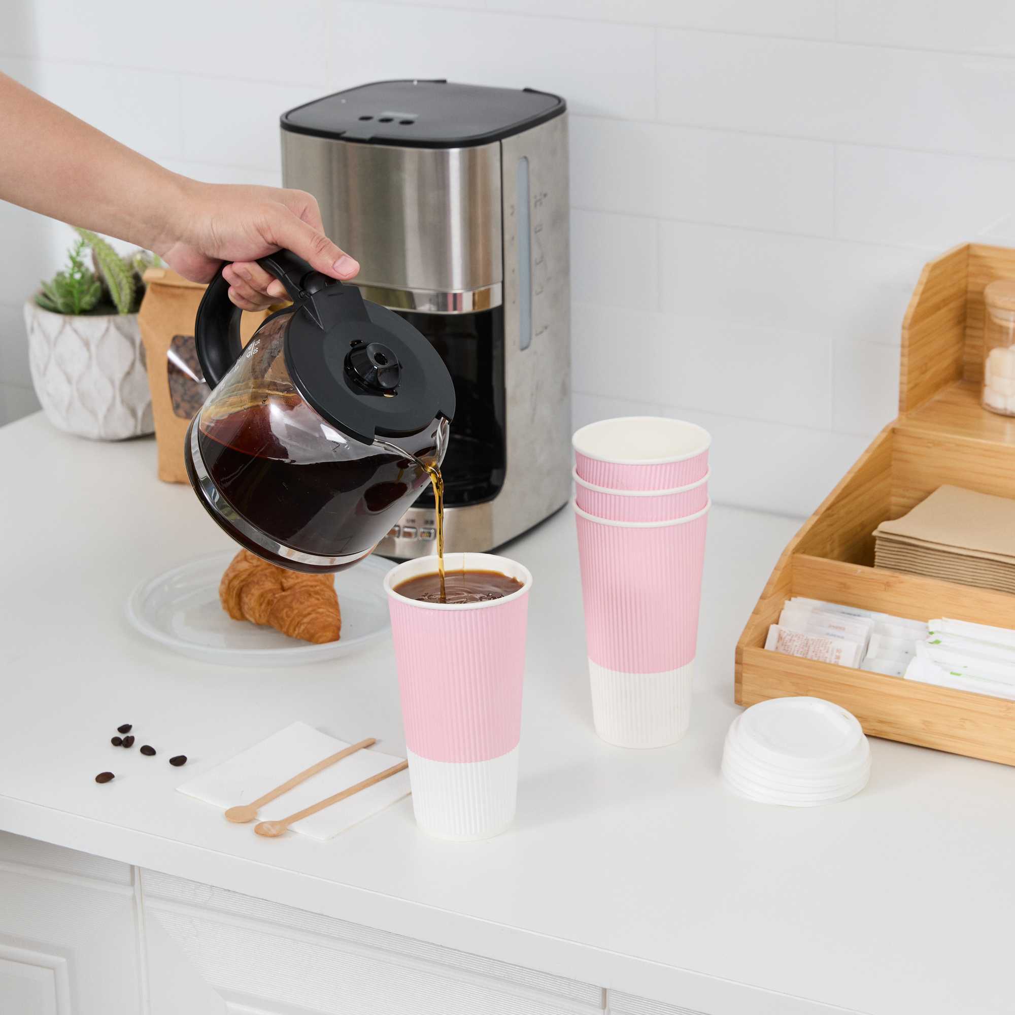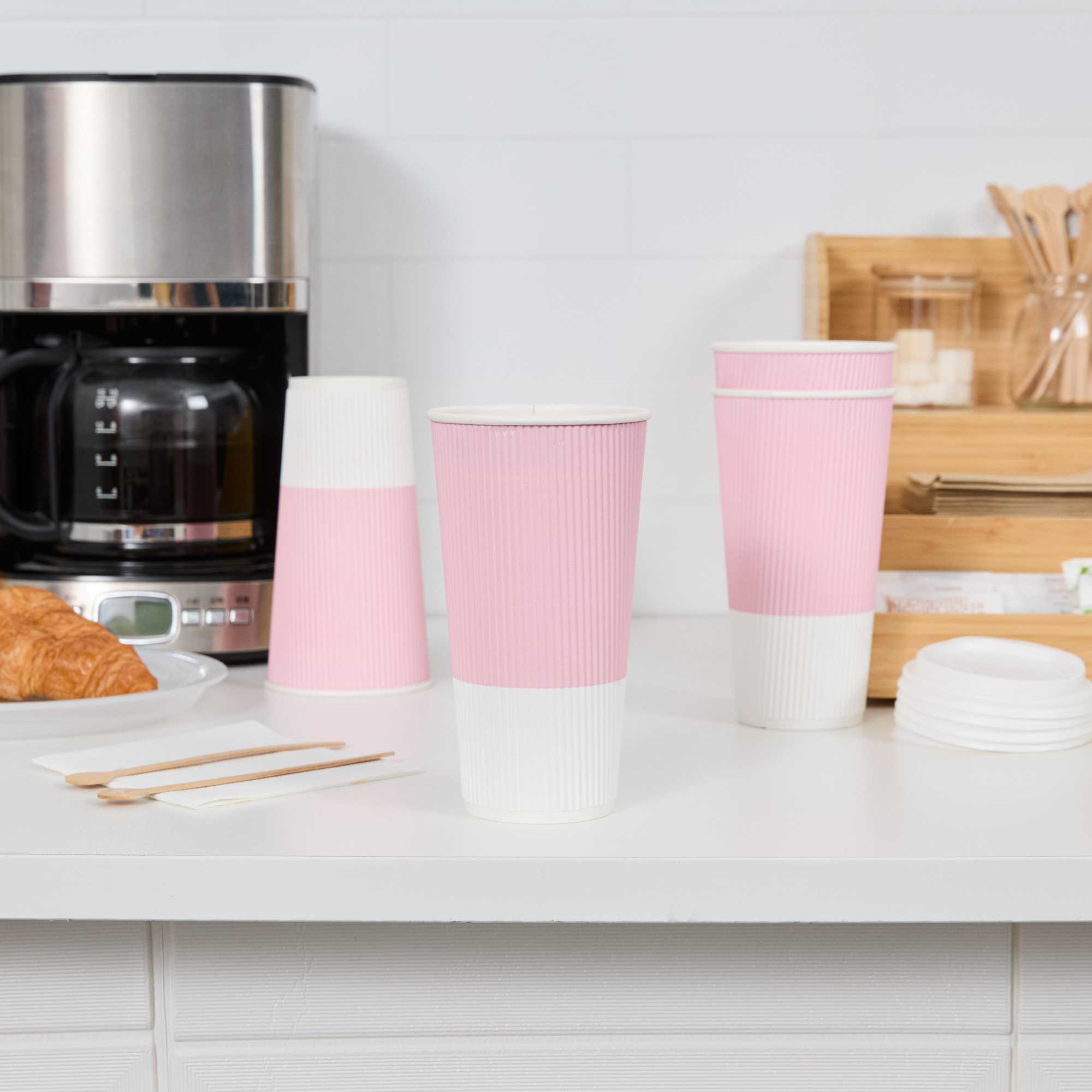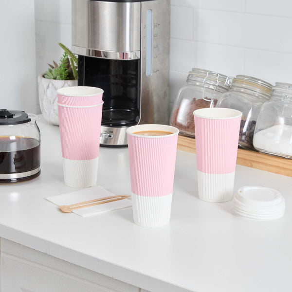 20 OZ LIGHT PINK PAPER COFFEE CUP - RIPPLE WALL