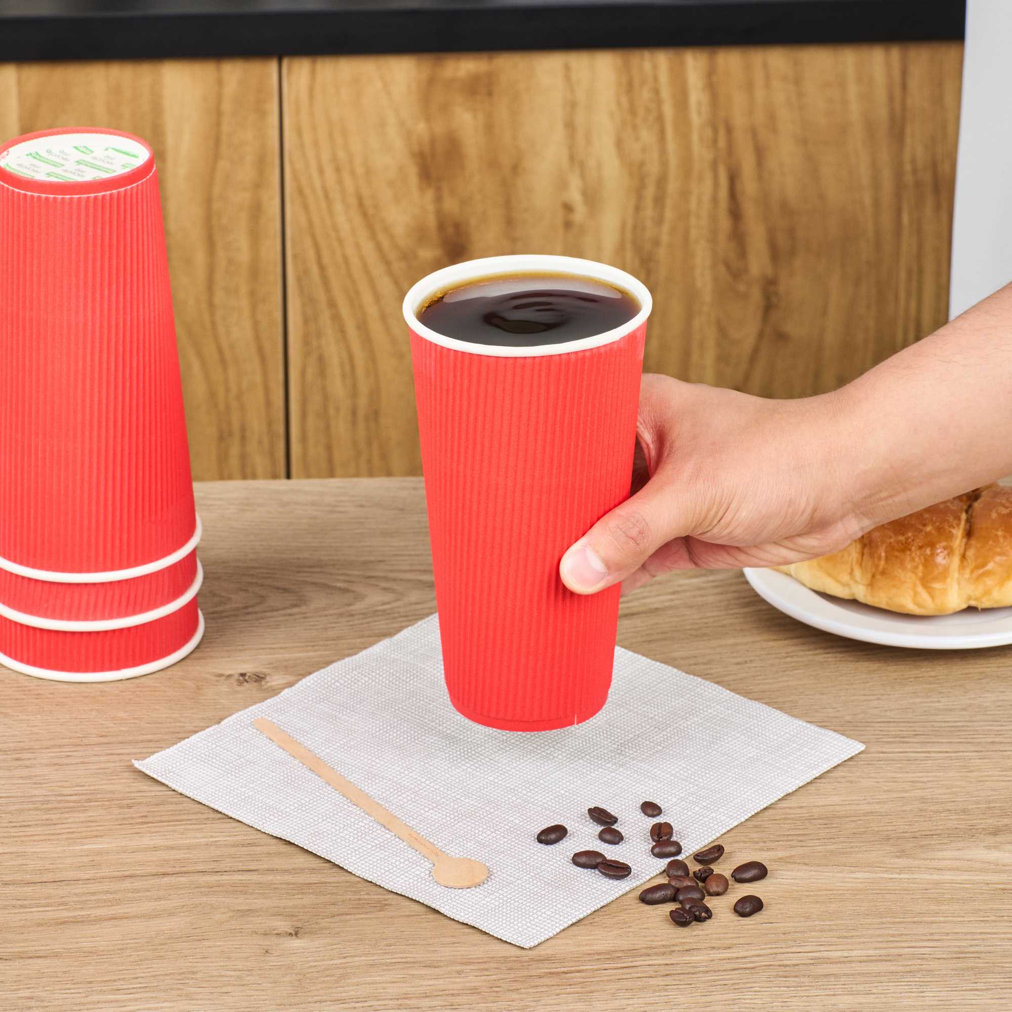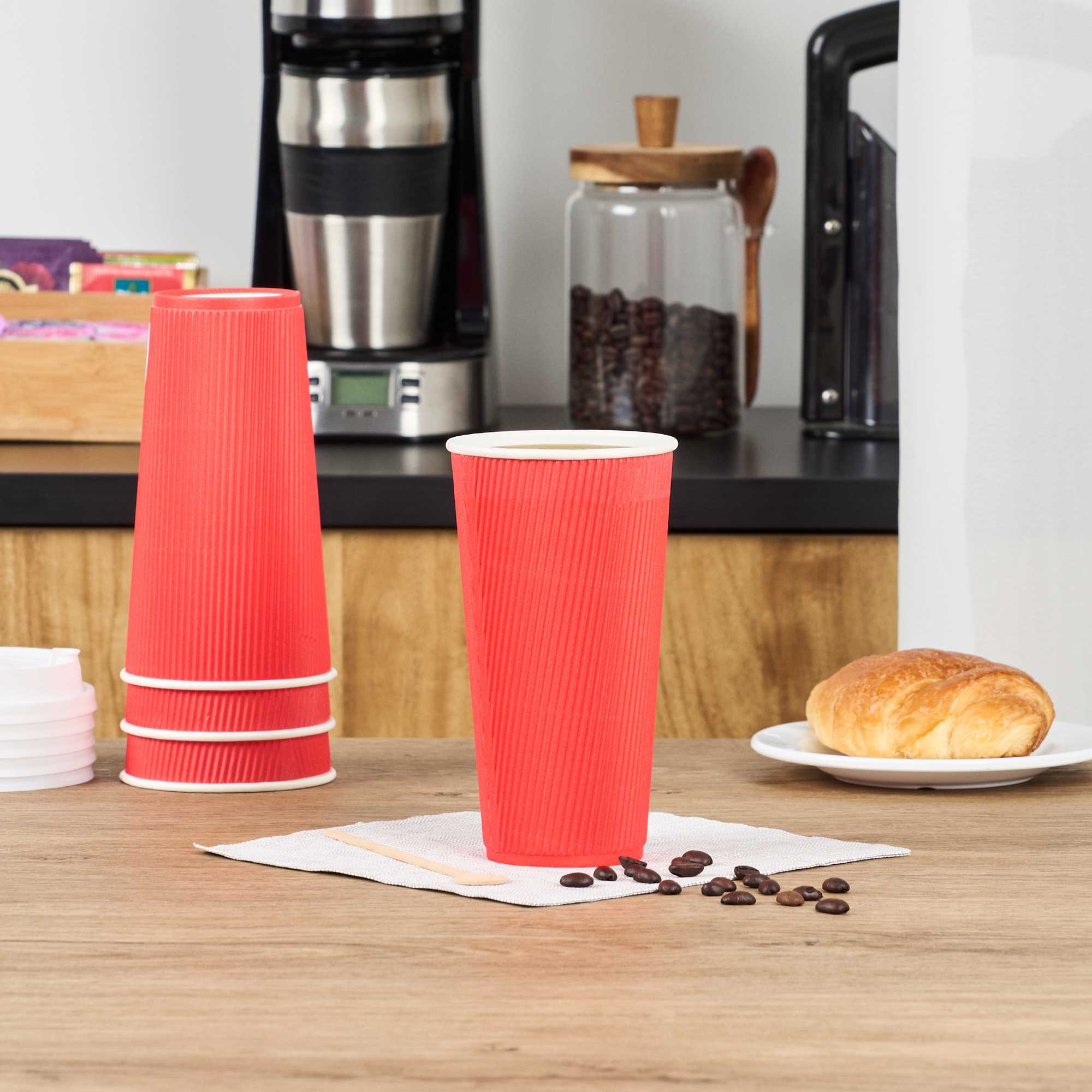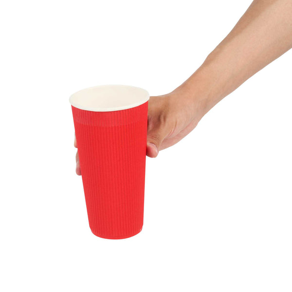 20 OZ RED PAPER COFFEE CUP - RIPPLE WALL