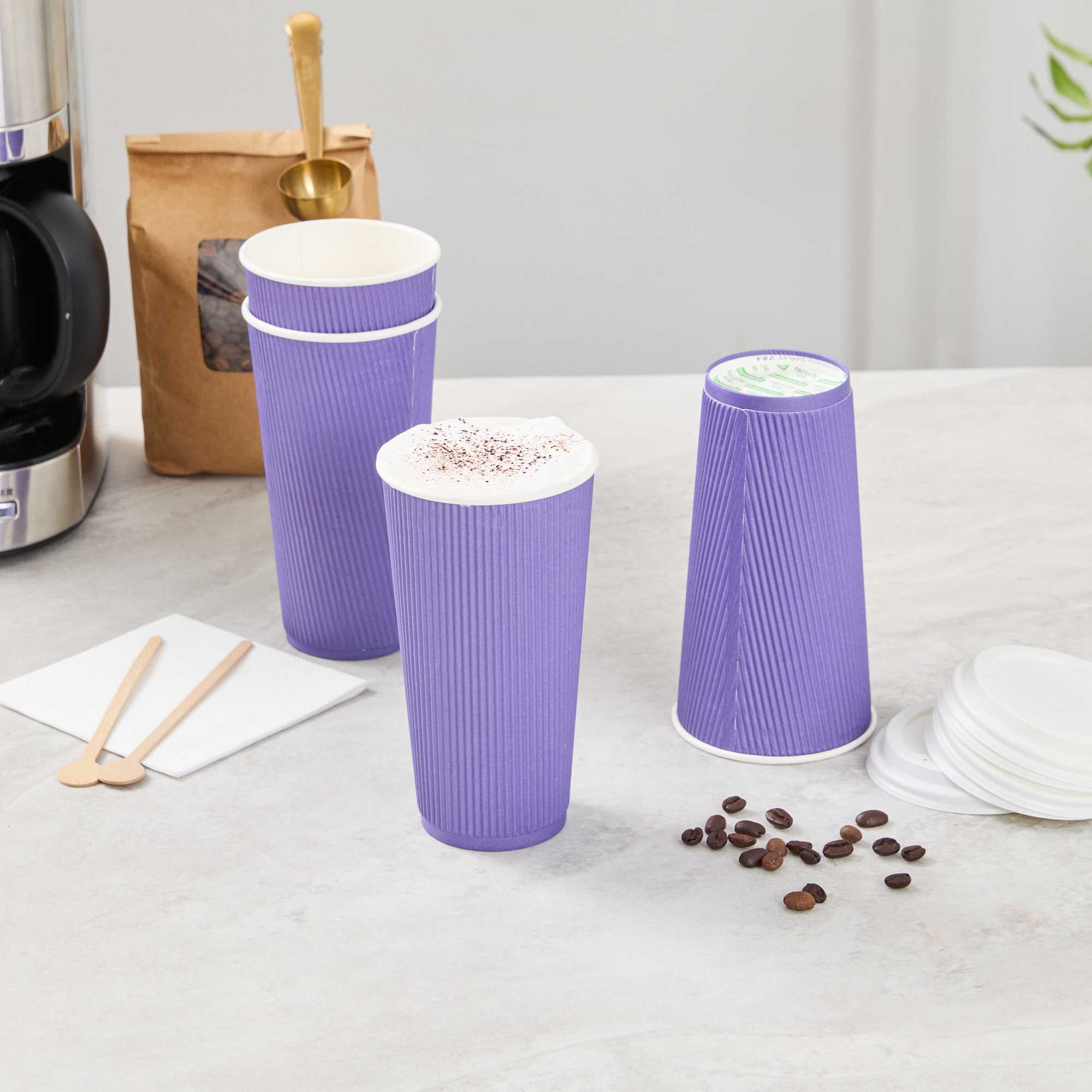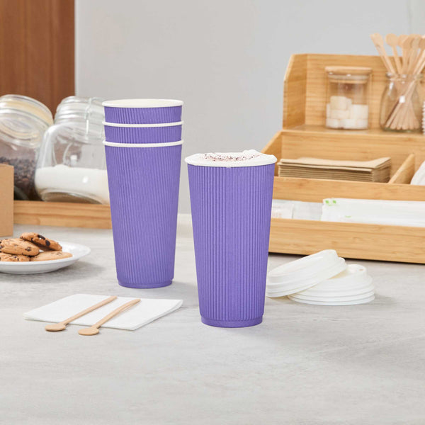 20 OZ ROYAL PURPLE PAPER COFFEE CUP - RIPPLE WALL