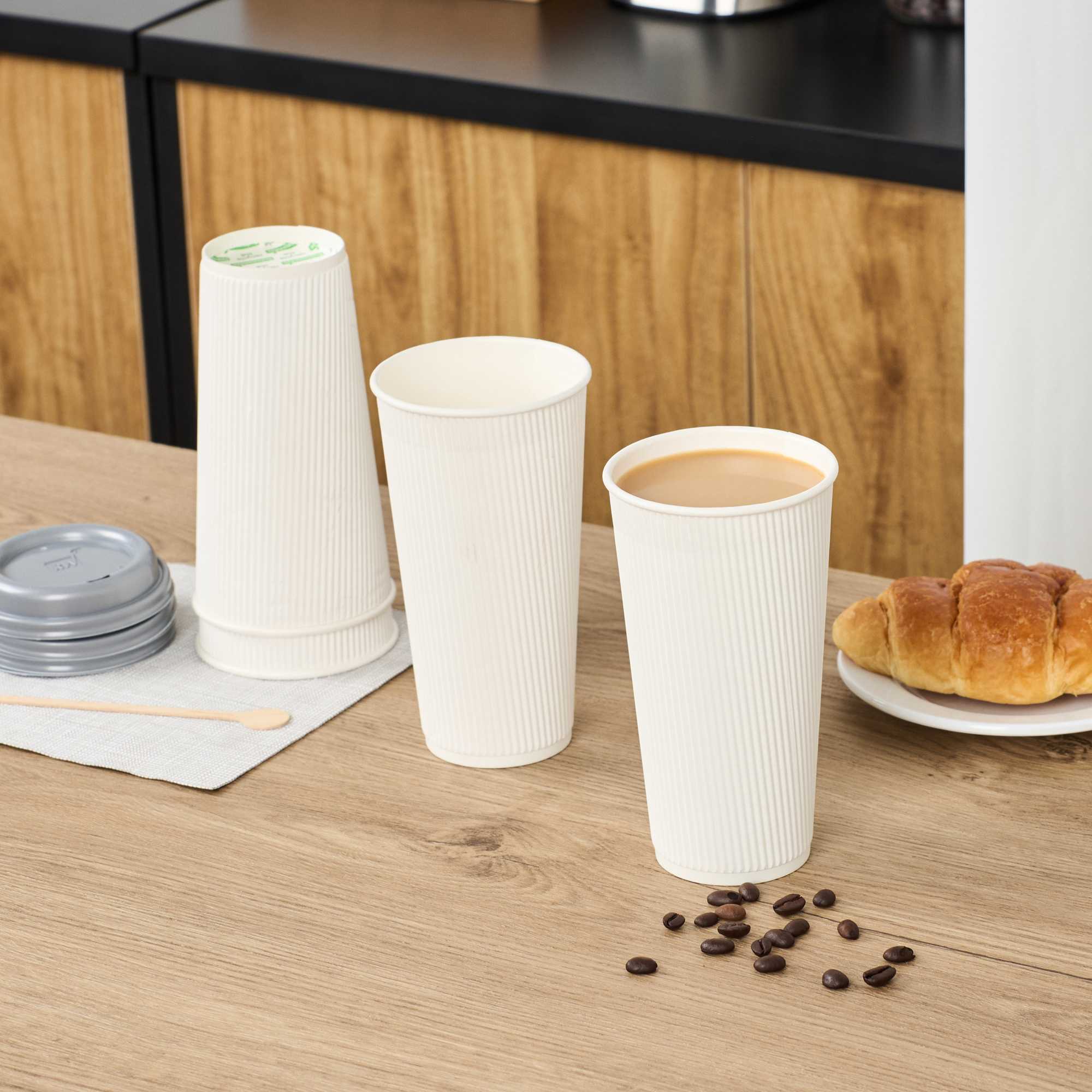 20 OZ WHITE PAPER COFFEE CUP - RIPPLE WALL
