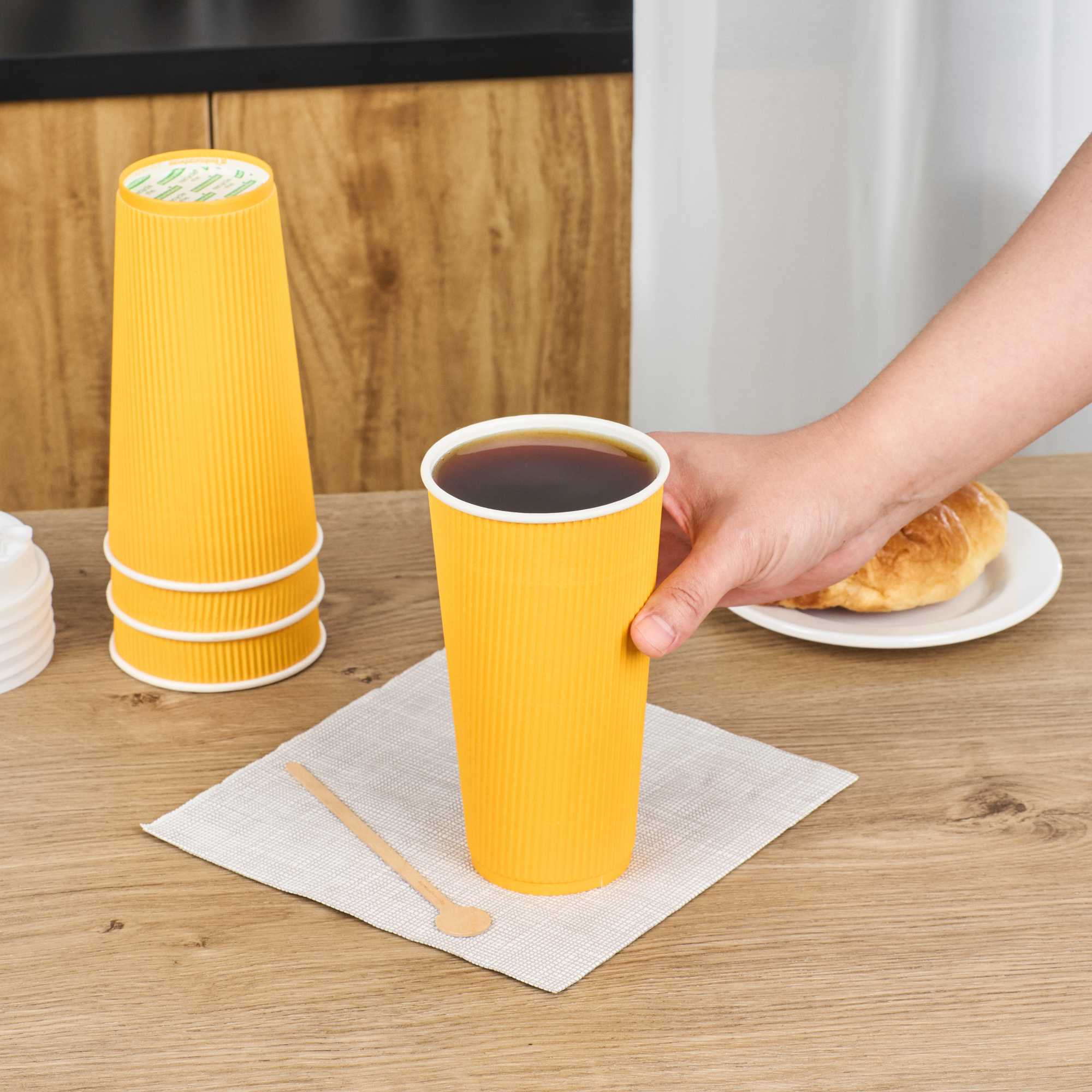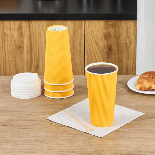 20 OZ YELLOW PAPER COFFEE CUP - RIPPLE WALL