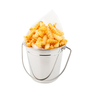 Serve side dishes, French fries, and other tasty finger foods in style in this unusually charming Met Lux Medium Stainless Steel Pail. Designed to mimic the look of a garden pail, this food-safe stainless steel bowl adds a touch of rustic sophistication to any setting. The high-shine polished finish adds a striking touch to your food presentation, while the functional handle provides a fun and easy way to transport your dishes. Ideal for use as a stainless steel dessert bowl or French fry container, this unique pail features a stainless steel construction that is incredibly durable, heat-resistant, and easy to clean. Each of these eye-catching French fry holders has a height of 5.5 inches with a diameter of 5.1 inches. Contains up to 28 ounces of your delicious fare! Sold in a 1 count box.