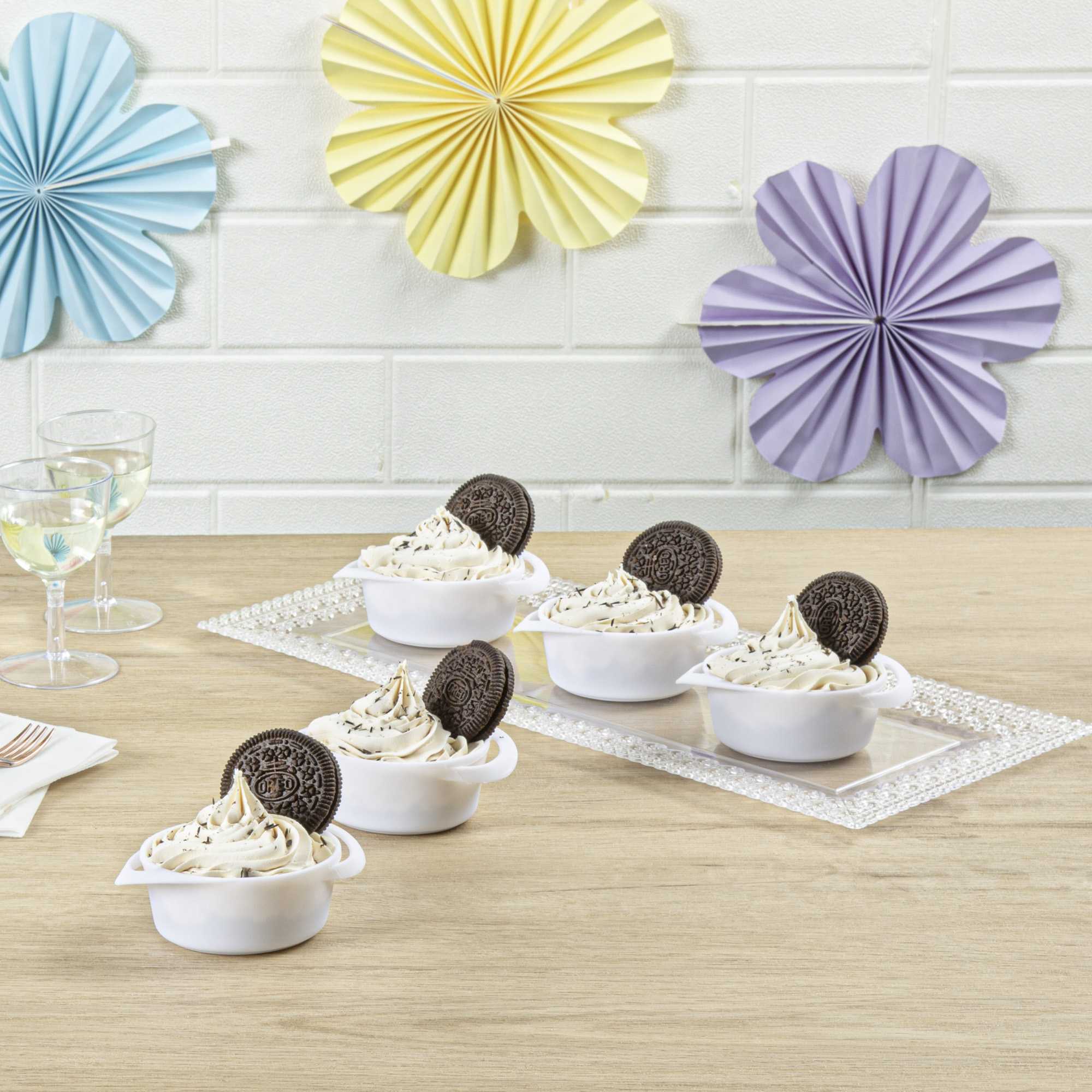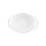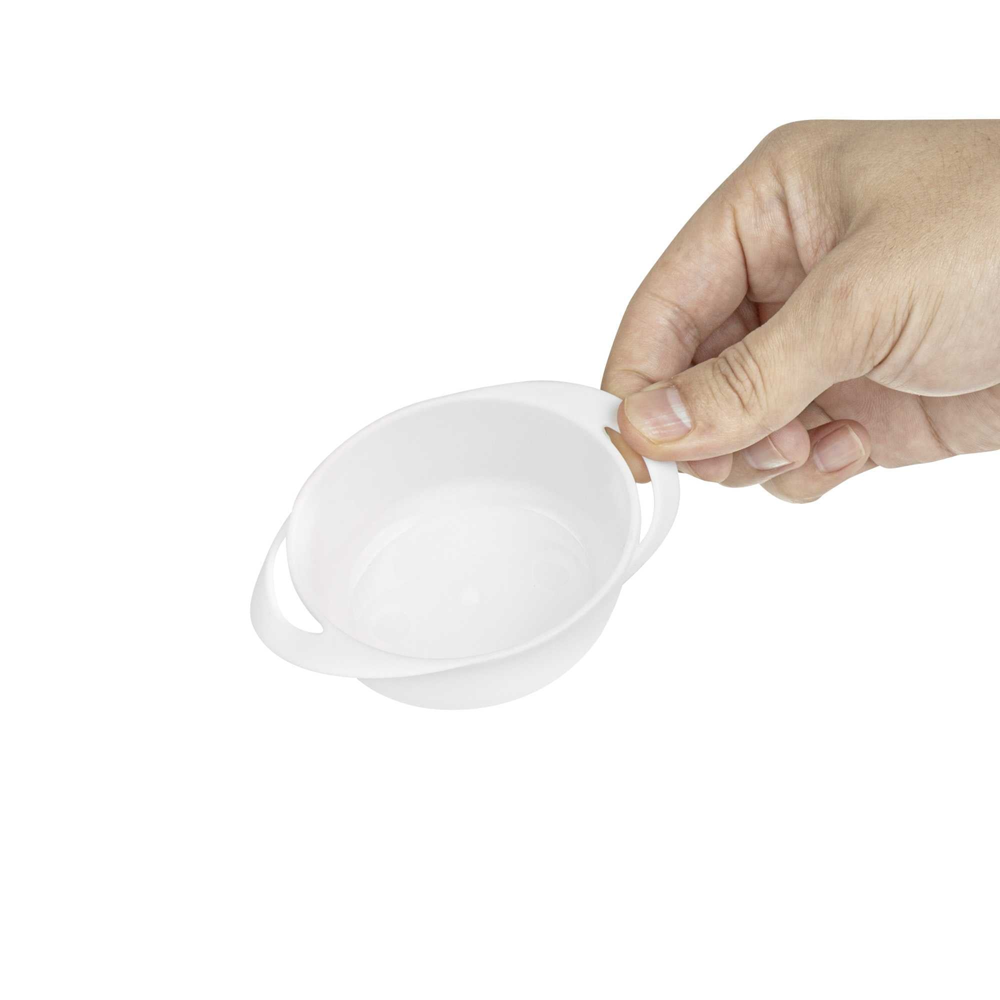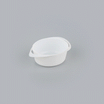 Our 3-ounce Round White Plastic Mini Infinity Pots are an ideal solution for serving appetizers or snacks. With elegant looping handles, these deep disposable plastic bowls provide an easy way for guests to carry their appetizer portions. The trendy and modern aesthetic of these sturdy yet recyclable plastic bowls will impress your guests. For mess-free dining, the deep construction of these plastic appetizer bowls contains sauces and liquids. Lightweight and portable, these plastic bowls with handles allow for quick and easy transport between kitchen and table. These disposable plastic deep bowls can also be used for dips, nuts or candies and easily be discarded after use. Measuring 2.5 inches in diameter by 1.25 inches in height to hold a generous 3 ounce portion, these plastic bowls maximize your table space. Sold in a 25 count box.