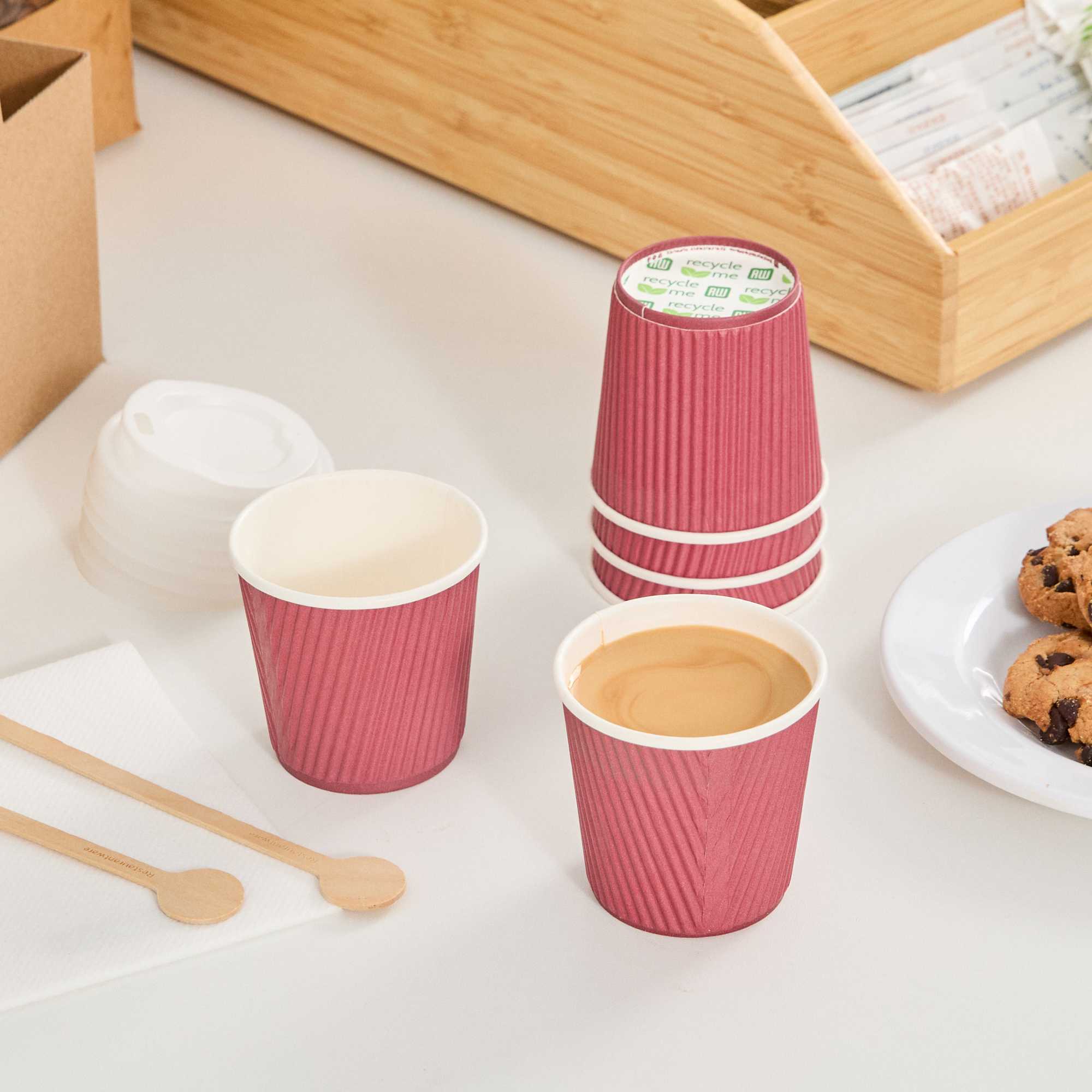 4 OZ CRIMSON PAPER COFFEE CUP - RIPPLE WALL