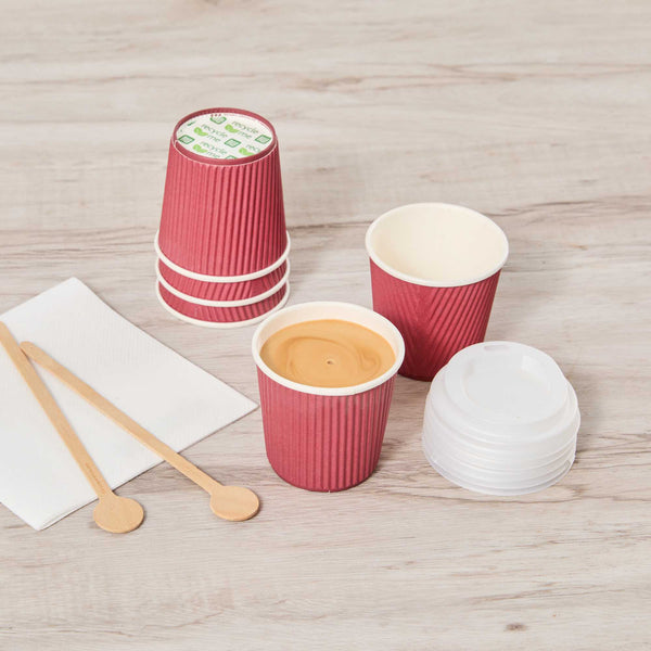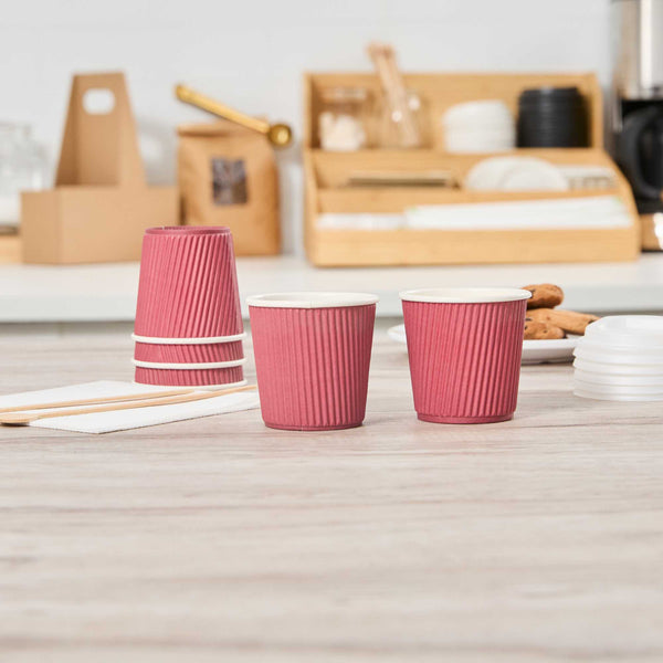 4 OZ CRIMSON PAPER COFFEE CUP - RIPPLE WALL
