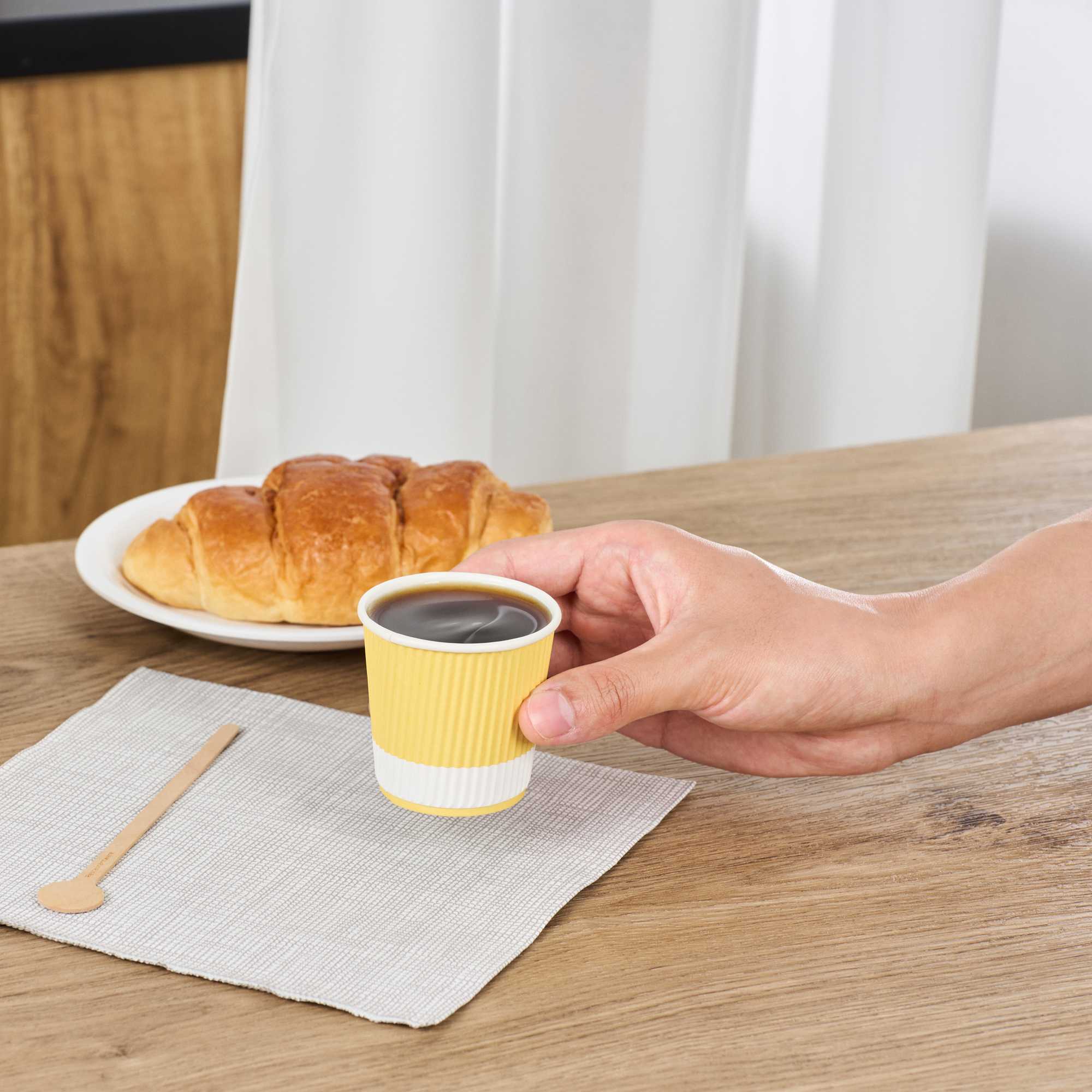 4 OZ LIGHT YELLOW PAPER COFFEE CUP - RIPPLE WALL