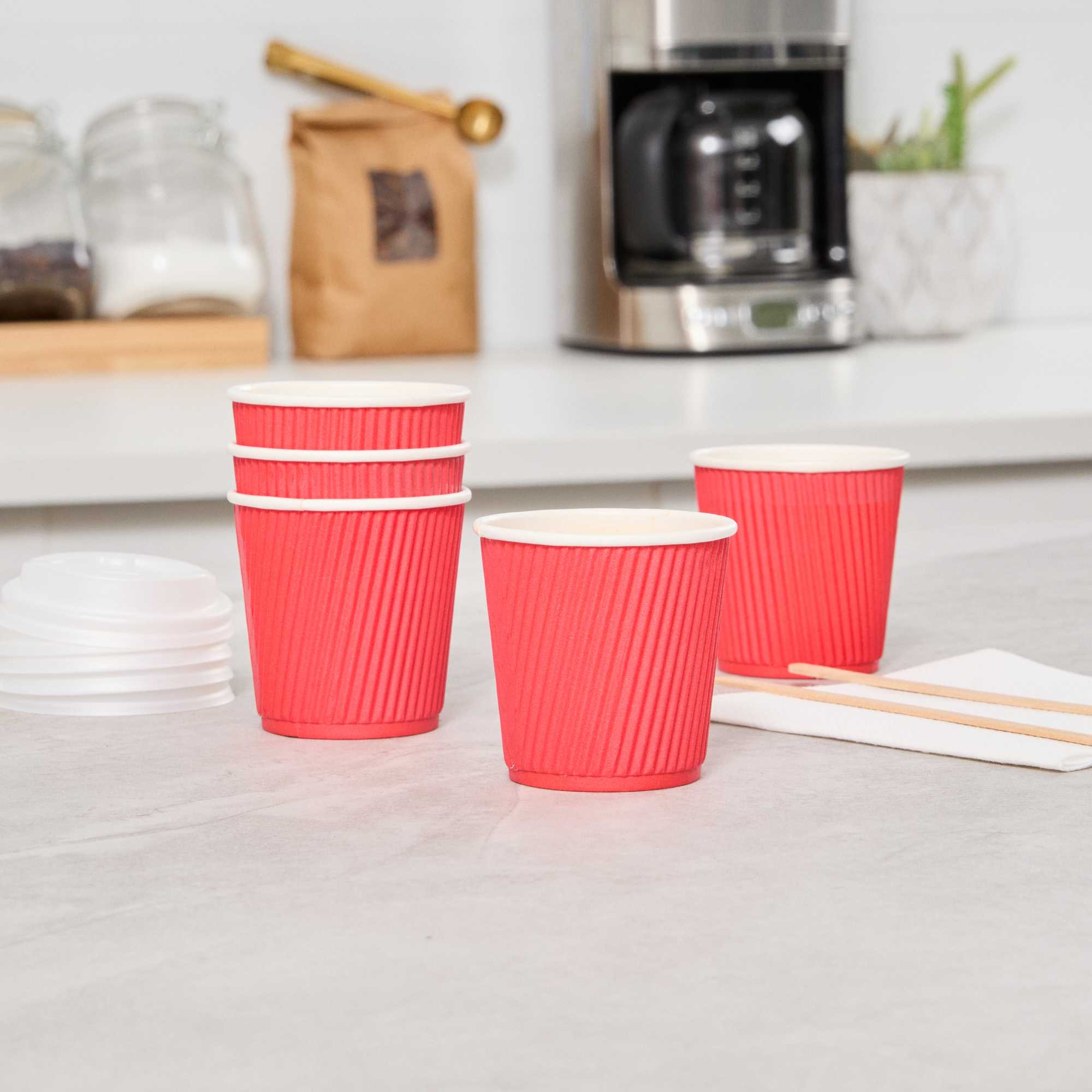 4 OZ RED PAPER COFFEE CUP - RIPPLE WALL