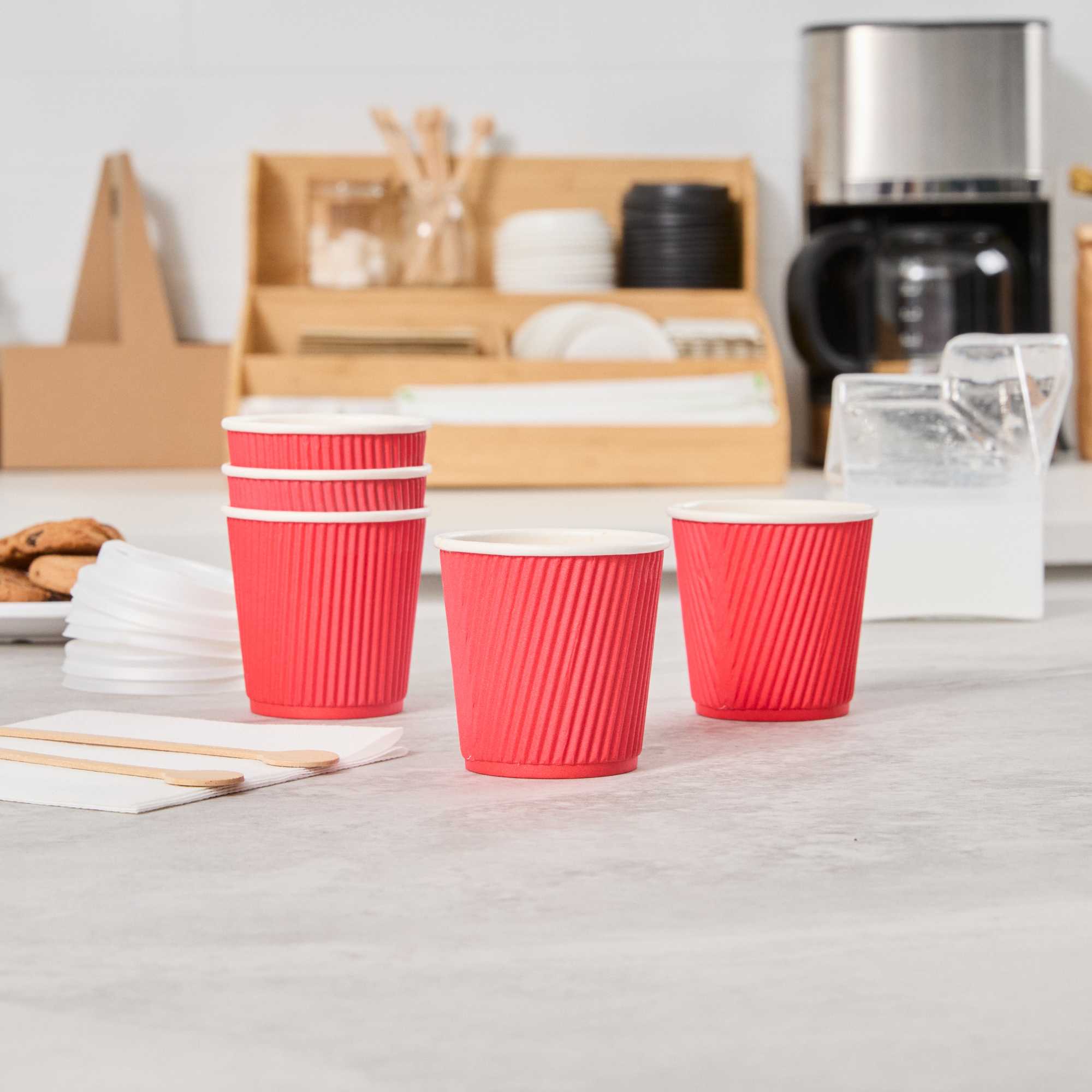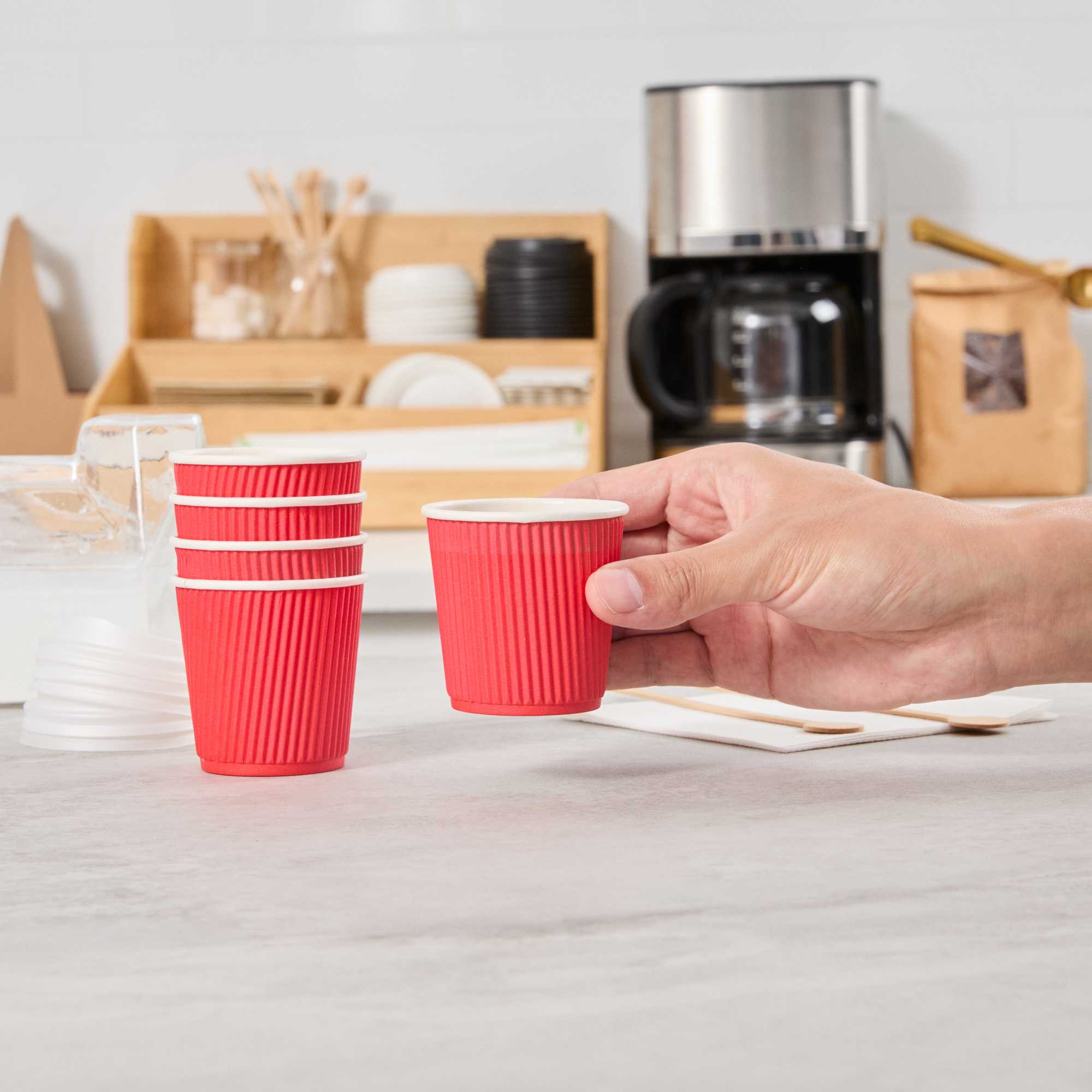 4 OZ RED PAPER COFFEE CUP - RIPPLE WALL